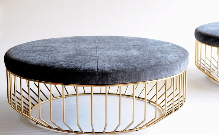 Blending sloping angles and taut lengths of bent metal are a modern interpretation of the wiry idea initially conceived by Warren Platner.The series is made up of a suite of tables,side tables and benches and fitted with luxurious solid wood or upholstered tops.