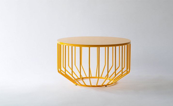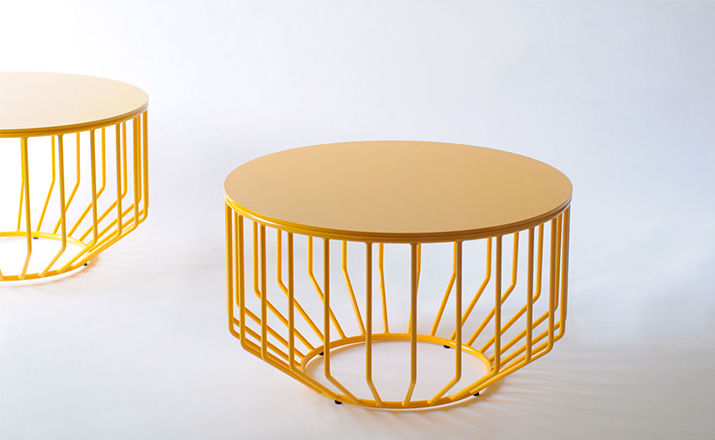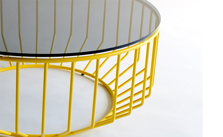 Blending sloping angles and taut lengths of bent metal are a modern interpretation of the wiry idea initially conceived by Warren Platner.The series is made up of a suite of tables,side tables and benches and fitted with luxurious solid wood,glass,or upholstered tops.By choosing the upholstered top the complement table can serve as an ottoman.