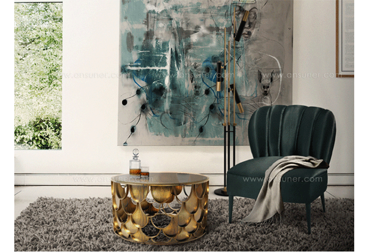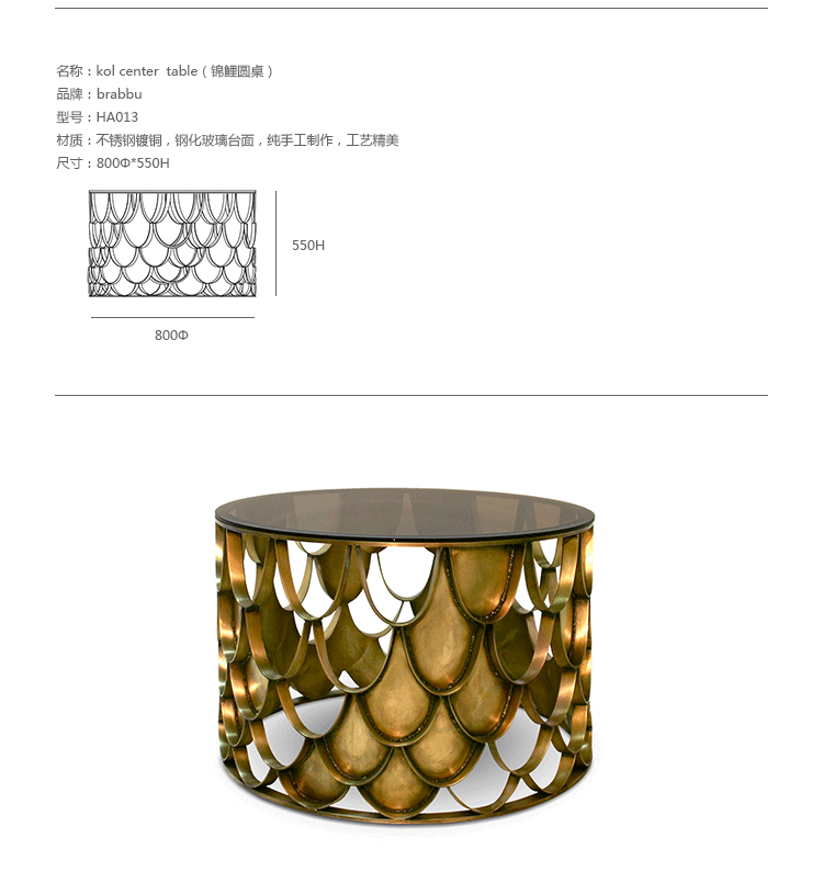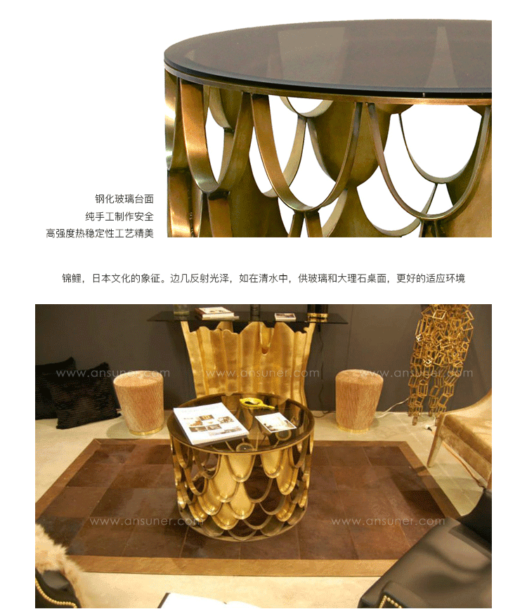 锦鲤,日本文化的象征。边几反射光泽,如在清水中,供玻璃和大理石桌面,更好的适应环境.