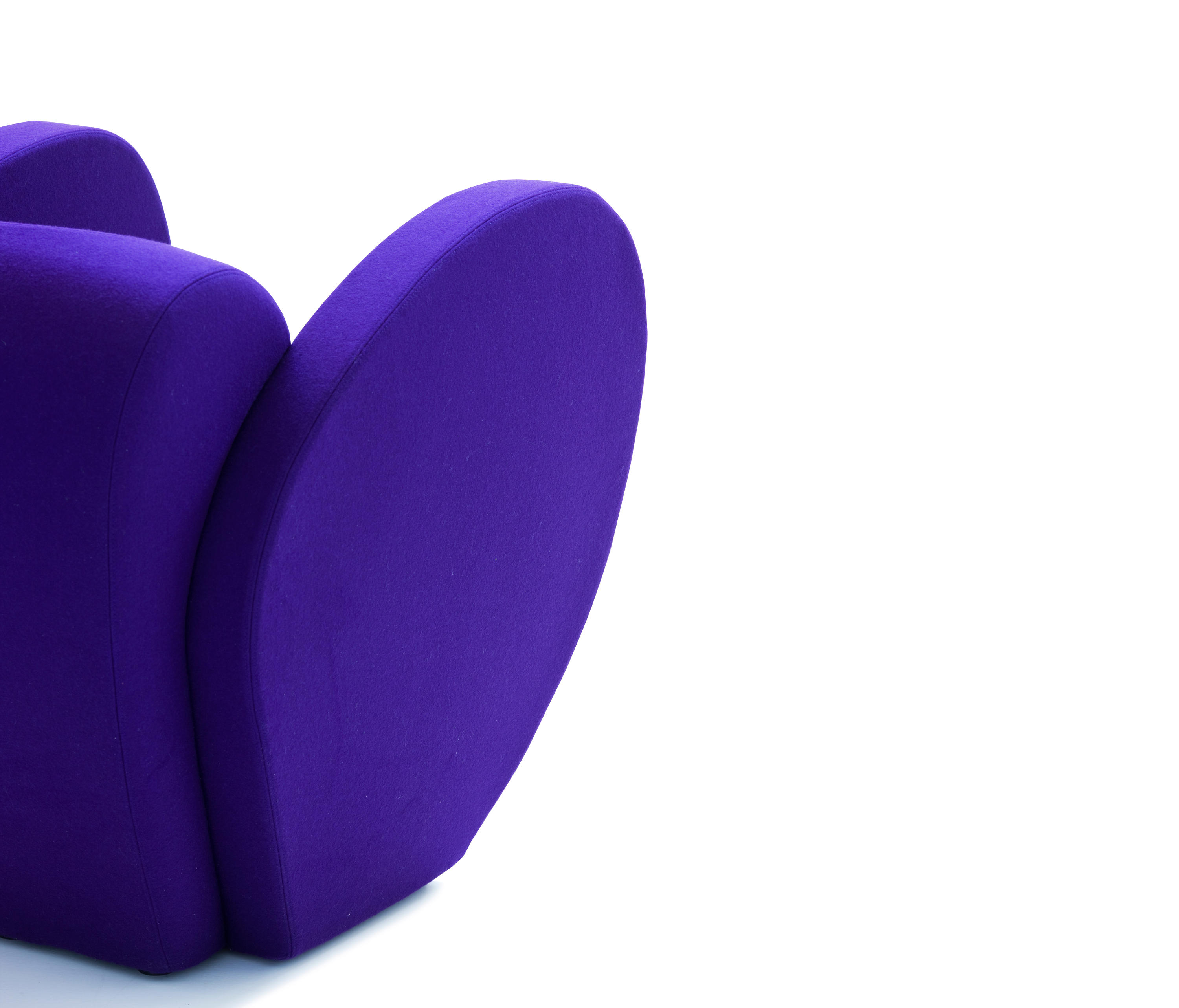 由Ron Arad在1988年设计的一个大的简单的钢椅,展示了一种简单的形式,可以在不影响设计原则的情况下,通过对材料和生产过程的重新解释而被翻译。从建设性的姿态获得的模型变成了工业生产;视觉的柔软和丰满的体积,舒适。更容易探索旋转模制和聚乙烯的使用;在冷泡中柔软的版本,用聚酯纤维包覆,触觉表面的转换;在元素的集合中,形态学和动态形式。