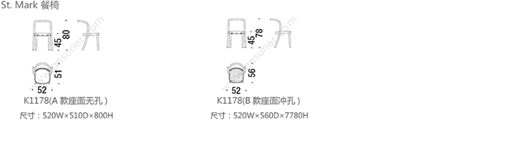 St. Mark 餐椅 系列尺寸/示意图
