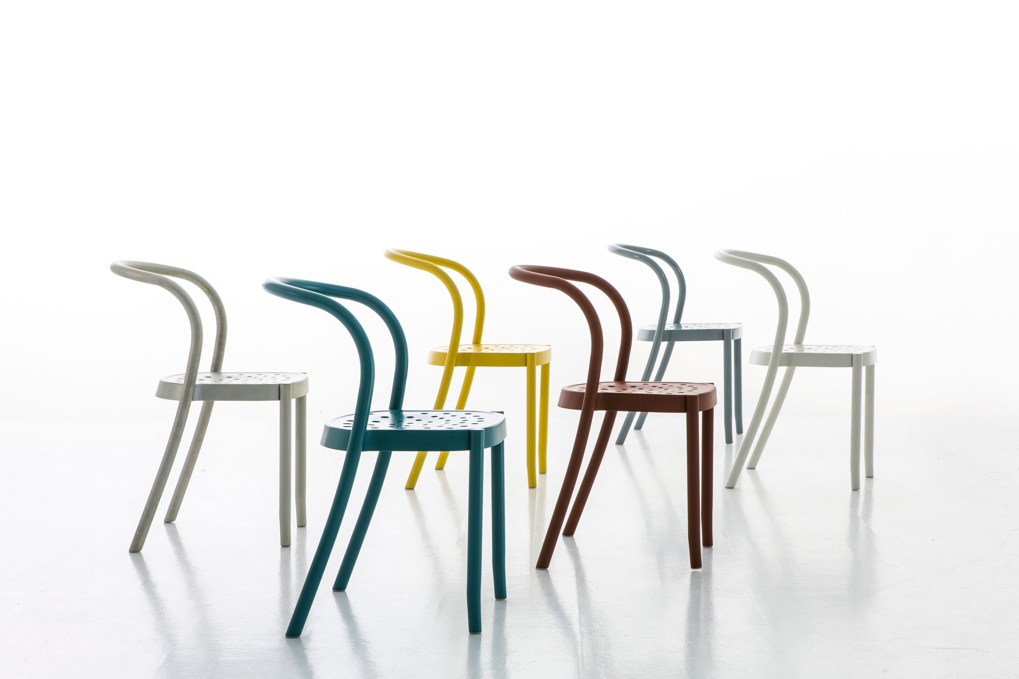 用两种截然不同的材料来表达对椅子的“卑微”传统的敬意。两个版本,好像木和铝,在克服工匠之间的区别和工业生产,是一个结果。反之亦然。它的坚固性和舒适性似乎暗示了工业化前时代的主要工匠的工作方式。背面包含并保证了人体工程学的最大限度,而铝,同时也大大减少了它的重量,允许户外使用。圣马克可以堆叠、色彩和舒适,它的美在于它的简单性和用途的多样性,允许任何类型空间的当代造型,从公共区域到家庭环境。