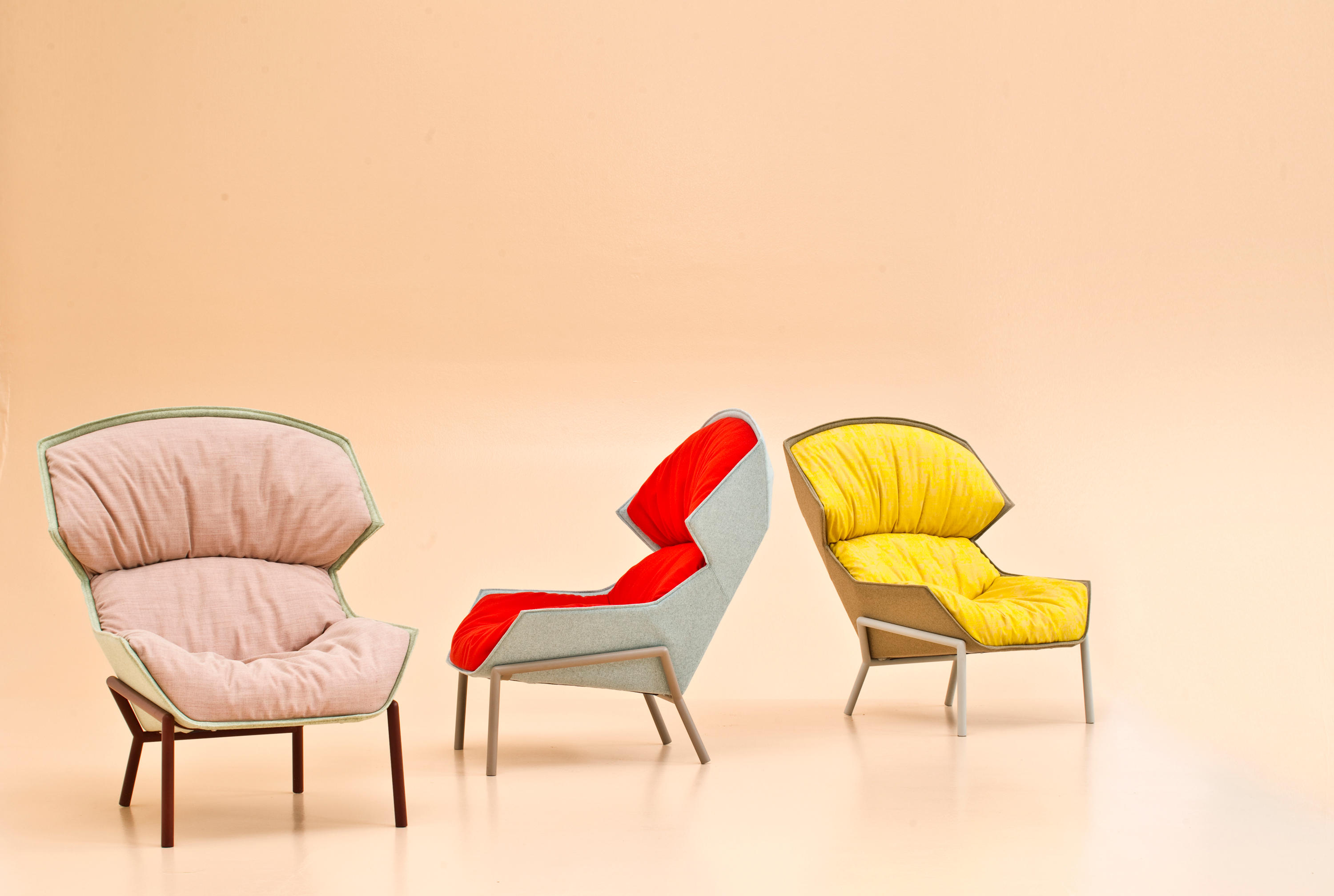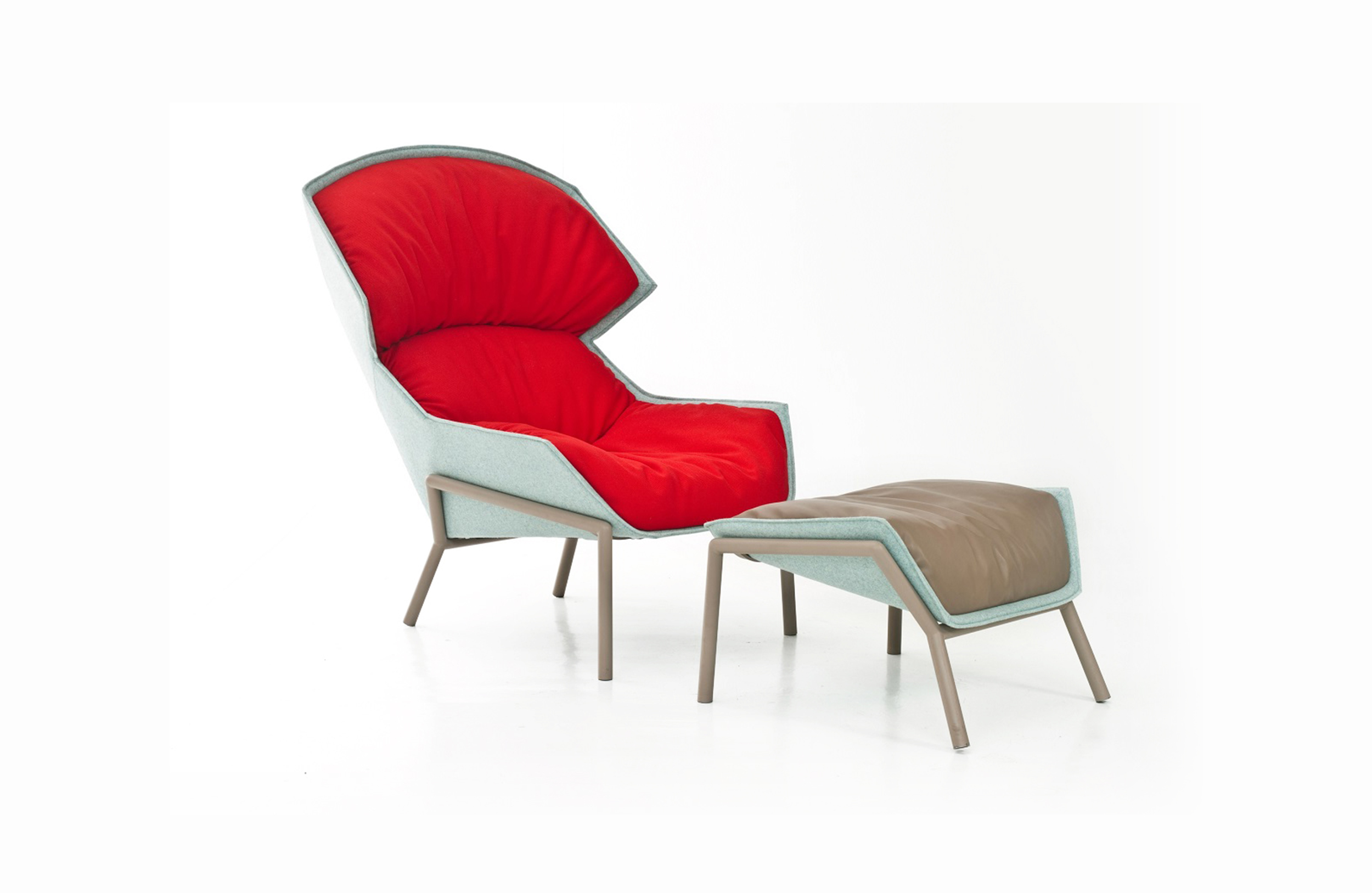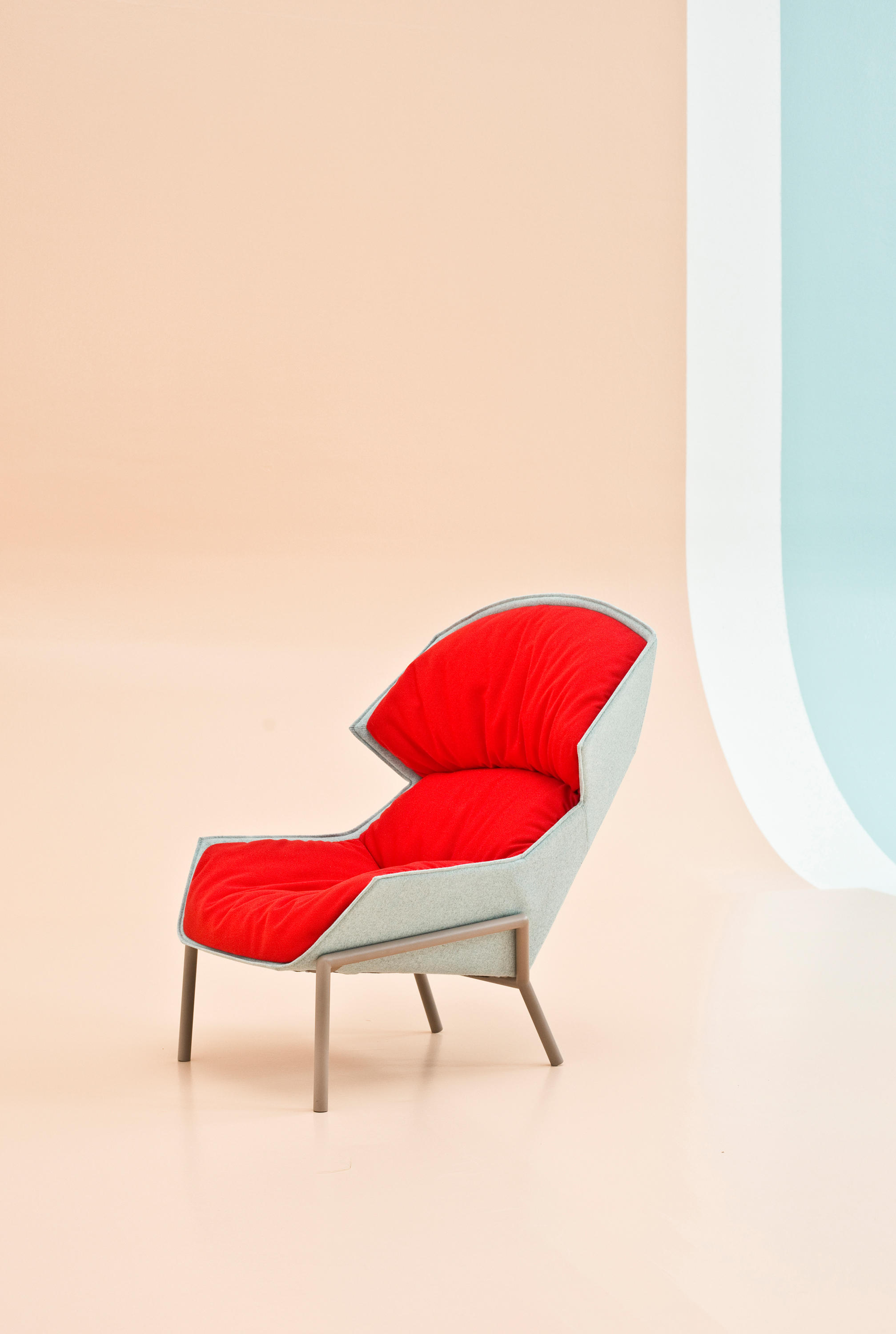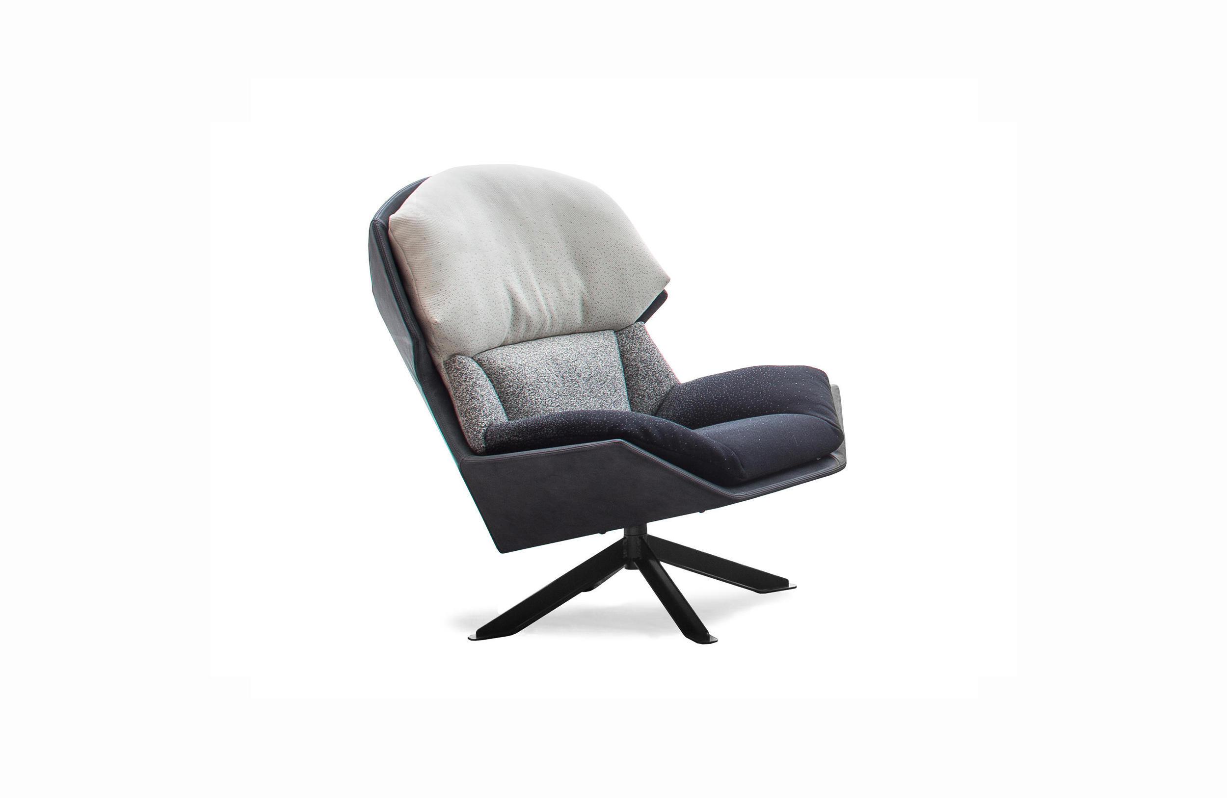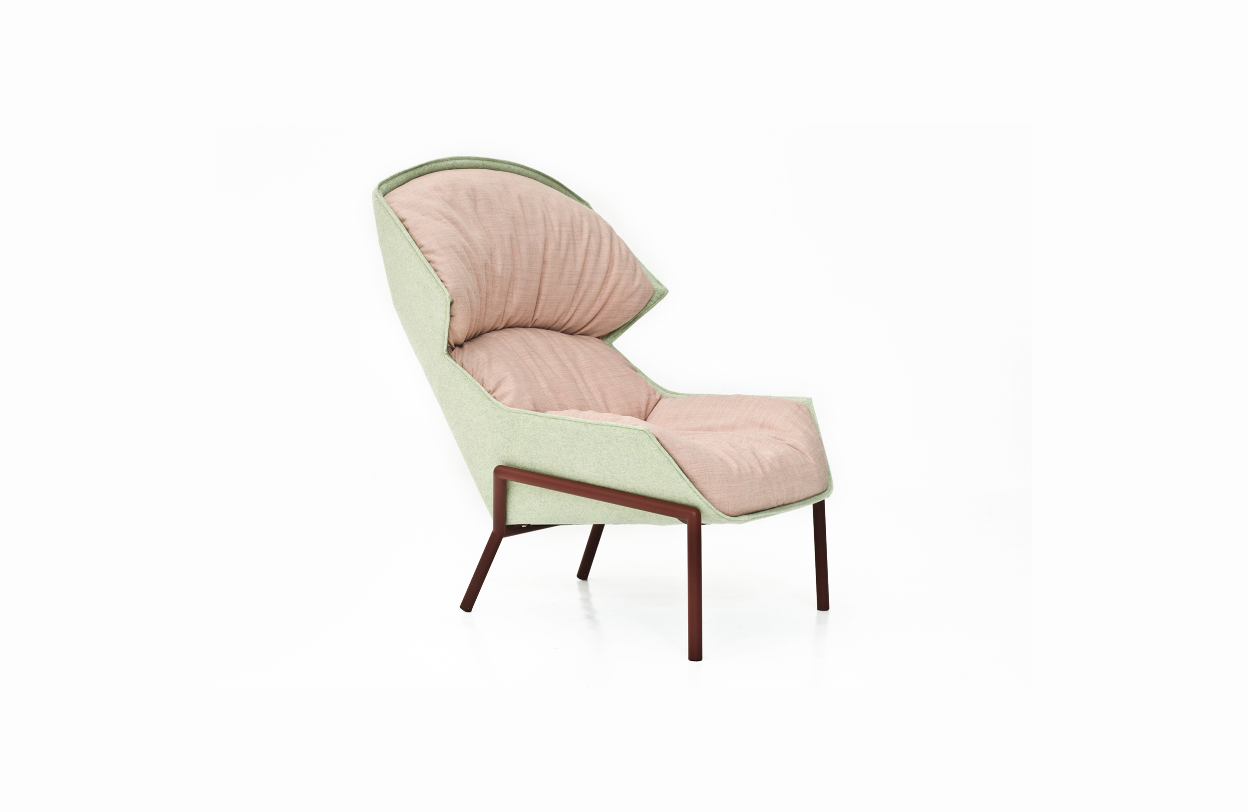 克拉丽莎(Clarissa)的扶手椅有一个独特的椅背,它拥抱了模特,并部分地用“兜帽”遮住了他们。它说的是一种双重语言:外部的几何图形,内部的柔软和舒适。金属管框架与外壳的干净、线性几何形状完美匹配,由热成型的聚酯纤维制成,与柔软而大方的垫座不一致。