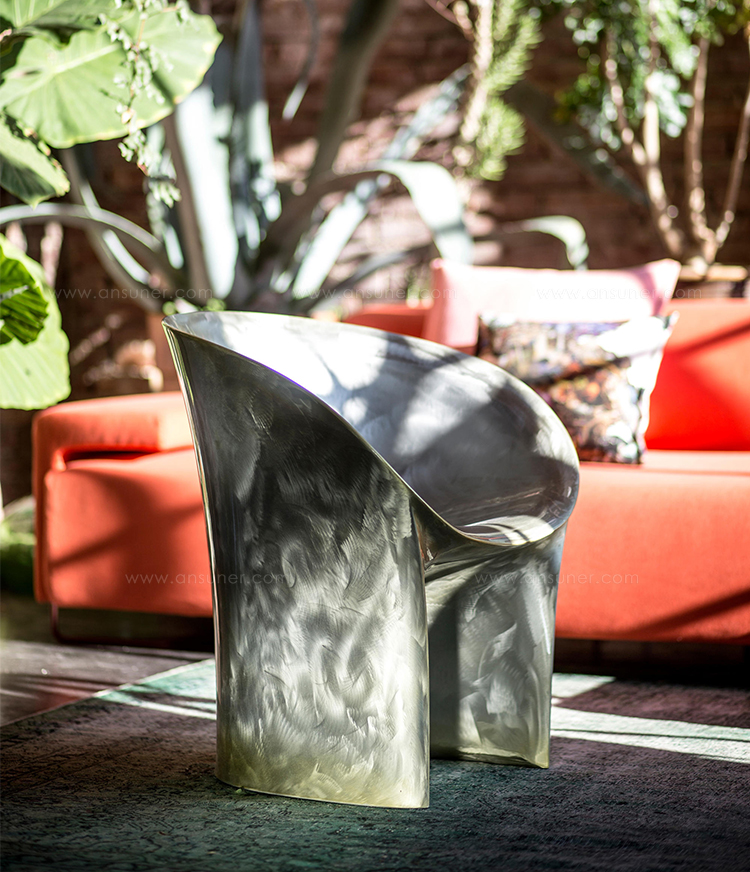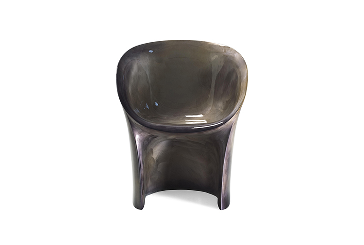 空隙和空间在完美的形式和谐中移动。移动的,流动的线条给椅子的轮廓似乎是转瞬即逝而不是固体,吸收和扩散一个微弱的,精致的辉光。在月球上,大小是一种错觉。从侧面看,座椅的曲线与底座的圆柱形结合在一起,让人联想起盛开的花朵,在这种严格的几何秩序下对有机的让步。从前面看,当光线出现和消失时,座位上的光芒就会散发出迷人的魔力。这种形式如此新颖的原因是来自不同层面的回响。它是一种新的三维形式,它加强了作品的时尚线条和月亮般的质感,这种质感源自于实体与消逝的相互作用。