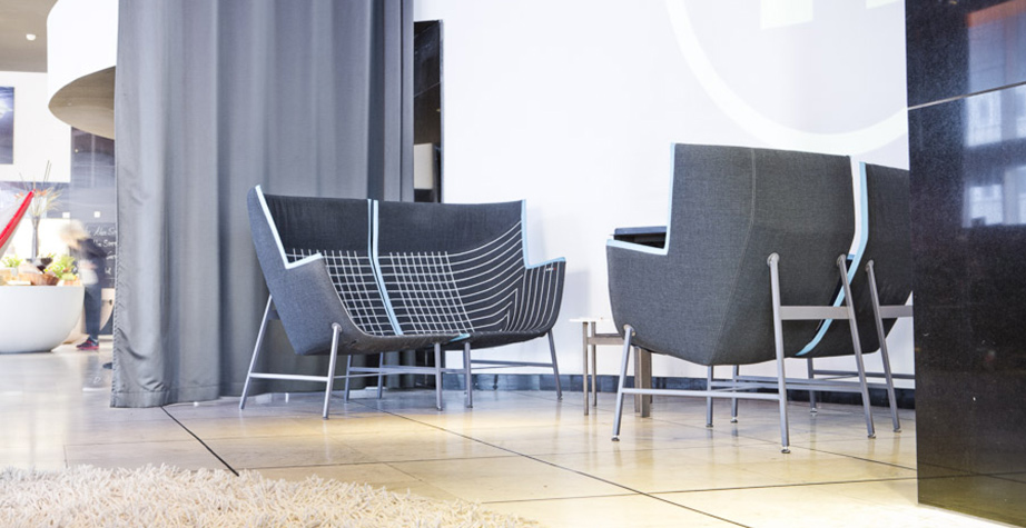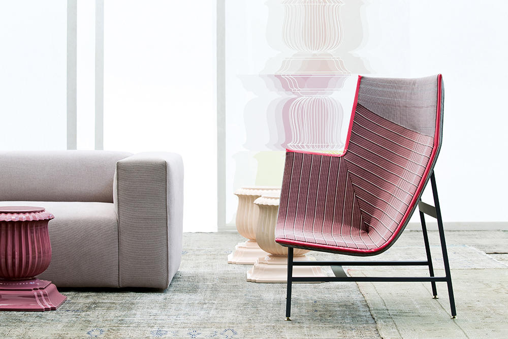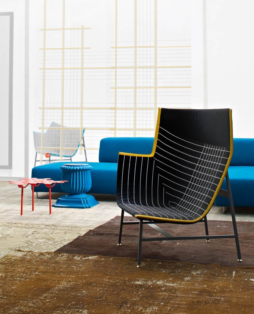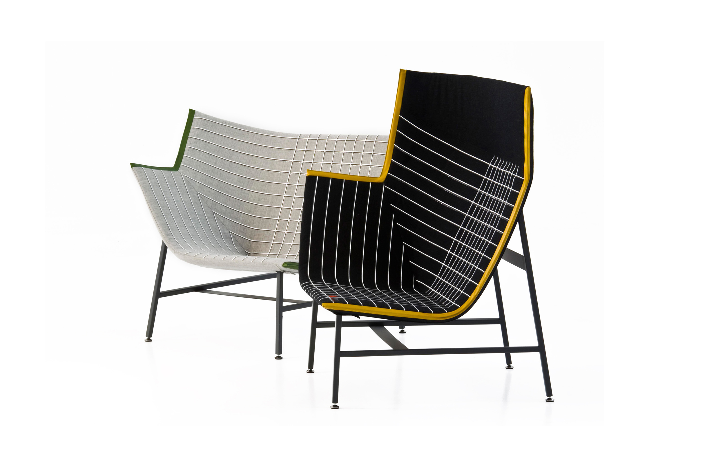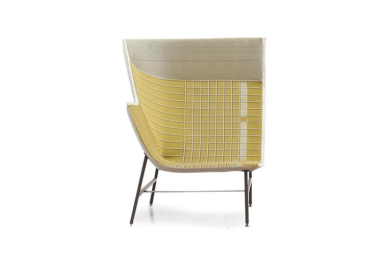 纸飞机起源于一种基于图形纸的织物设计:它的形状来自于纸张的折叠和造型,作为对形式和结构的探索,创造出角度、线条和多边形。它看似简单,却需要高超的裁剪技巧:面料的线条必须与椅子的几何结构完美结合,这意味着没有犯错的余地。