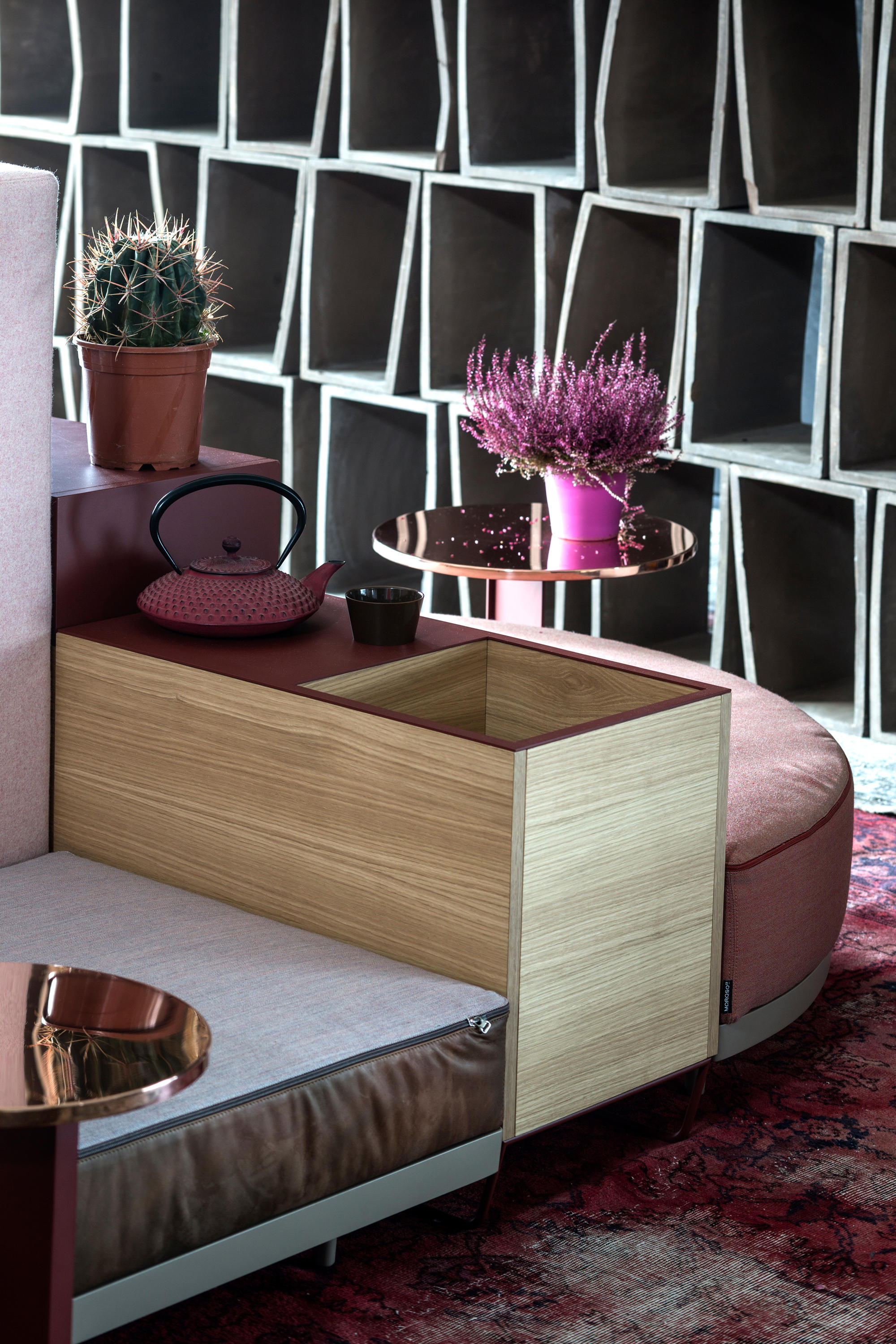设计相互作用,轨迹控制空间。比基尼是一种风景,它是时代的产物,是它所代表的社会。无论是在等候区还是在家中使用,座位系统是绝对灵活的,因为不需要空间的布局和座位组件的排列。这些组件在外观和功能上各不相同,因此,它们可以在任何设置中使用。凳子、桌子、衣架、容器、架子、屏风、工作台、座椅:每一个元素都结合在一起,创造互动和交流。多种功能和含义的结合意味着沙发作为看电视的家具或简单的休息场所的概念发生了革命性的变化,使它成为互动的核心。