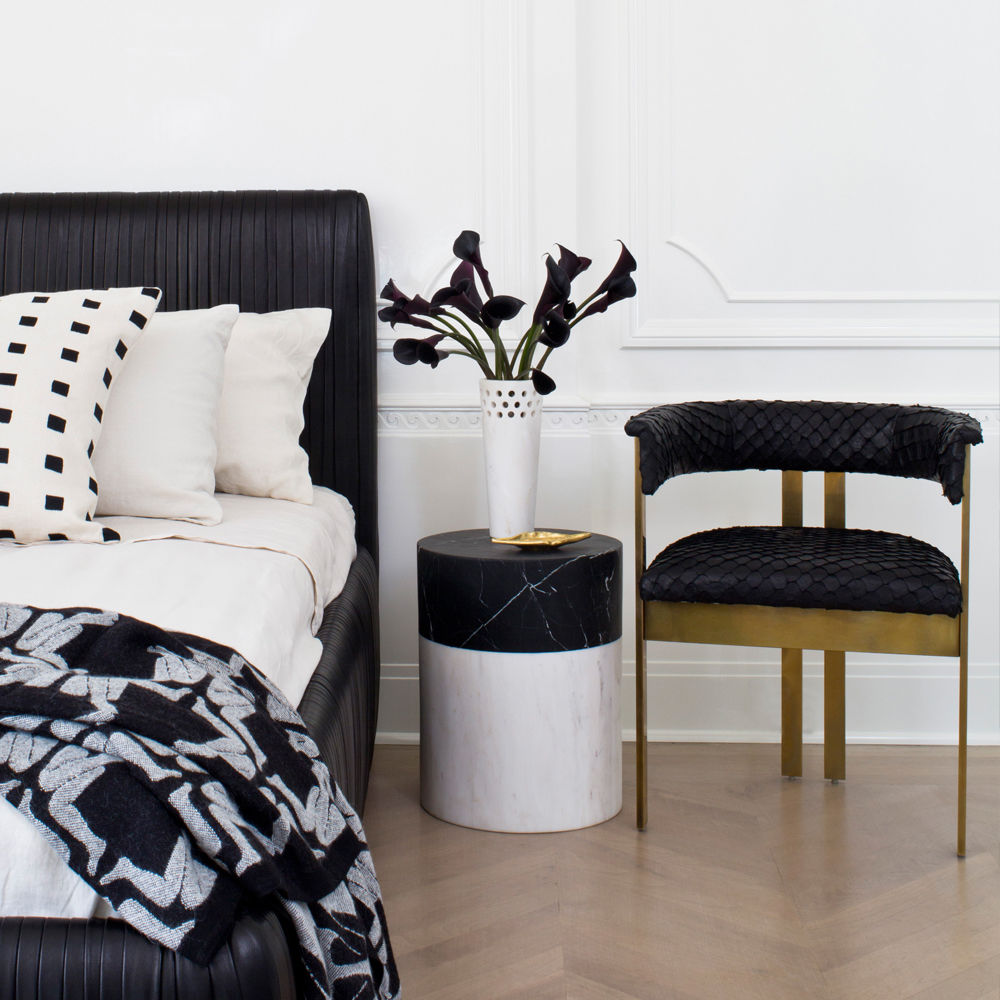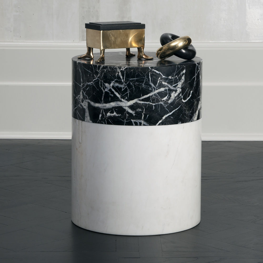 这款简约大理石凳子采用Kelly标志性的黑色玛奎那和白色卡拉卡塔大理石组合设计,非常时尚。 这件作品非常适合户外或室内座位,鸡尾酒桌或边几,或雕塑装饰品。