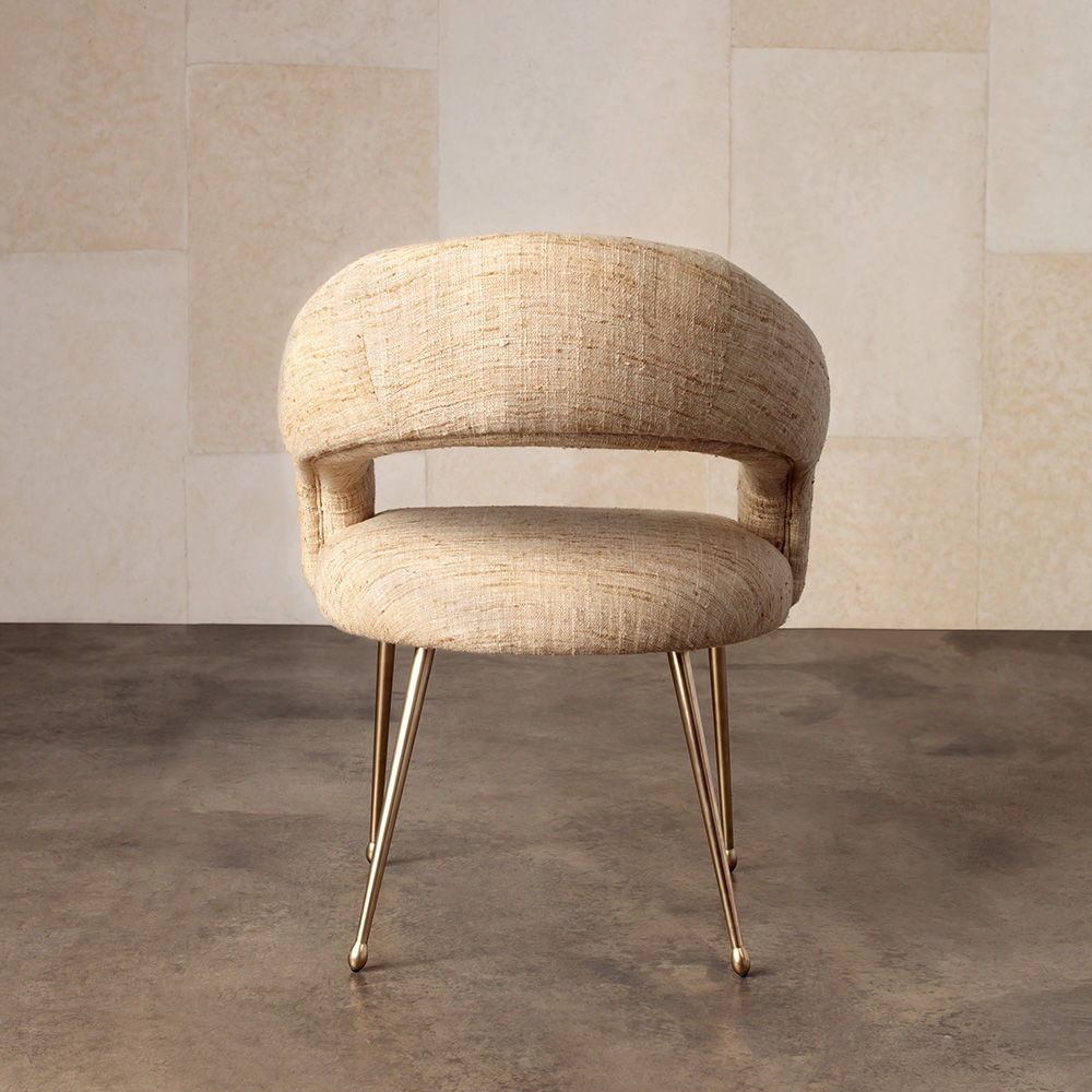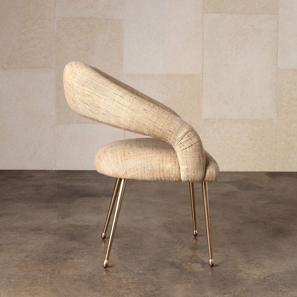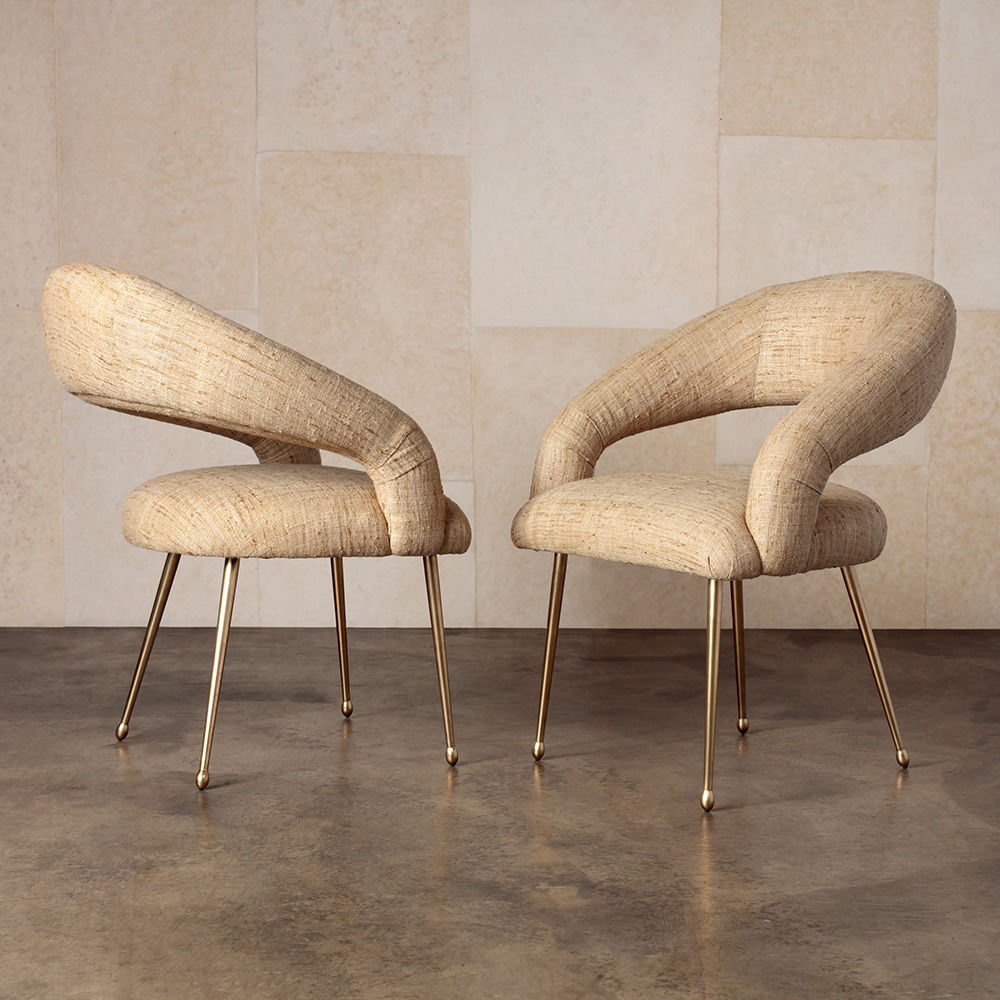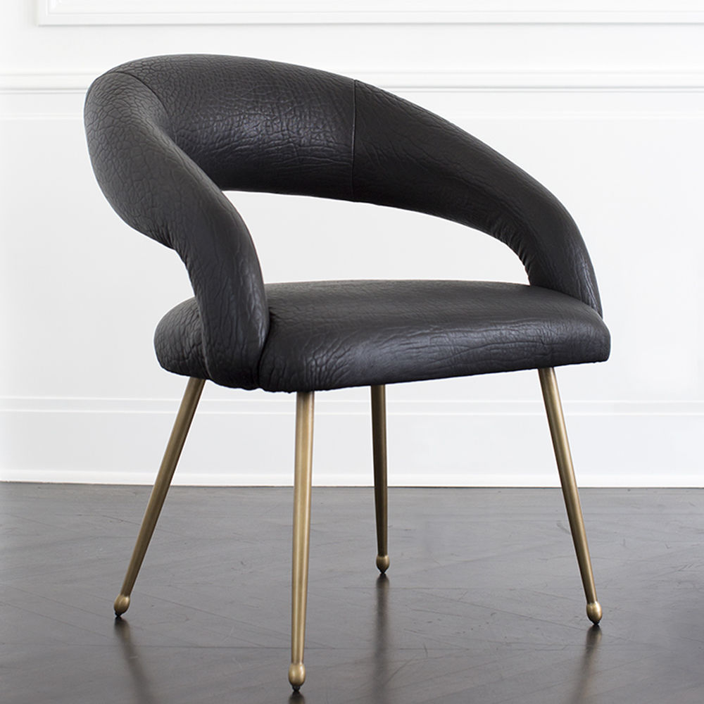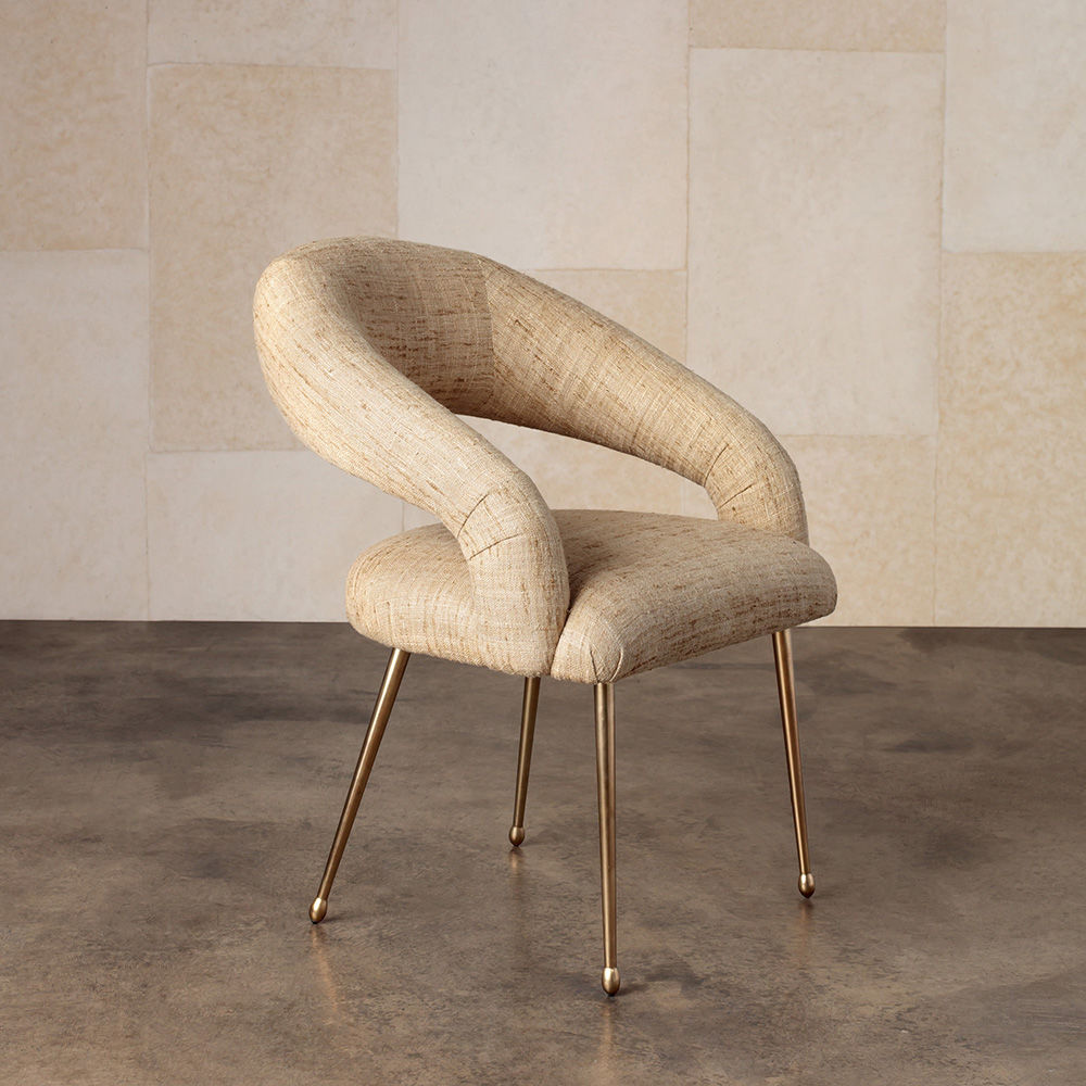 Laurel餐椅采用醒目开放的后背,紧凑的软垫座椅和柔和圆润的轮廓。 它位于抛光黄铜的锥形铸造黄铜腿上。 非常舒适,是休闲用餐理想选择。 提供精选面料和皮革。