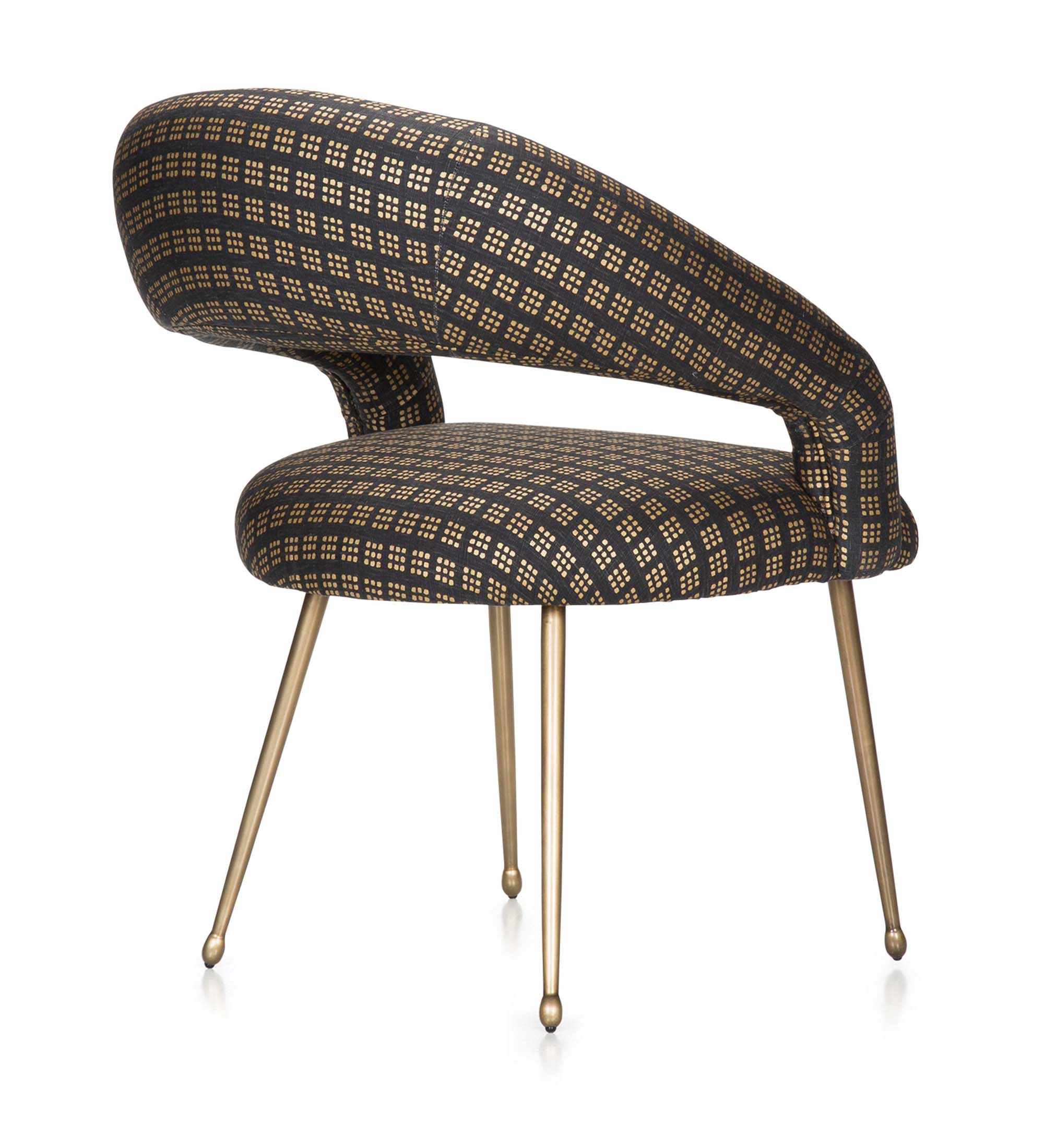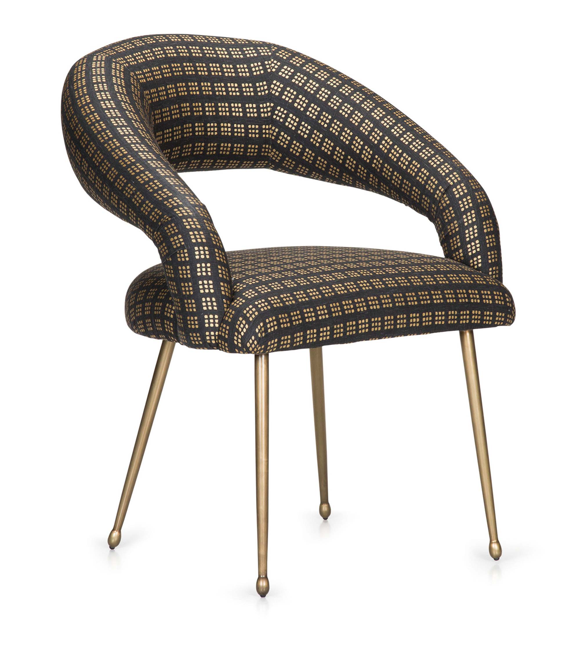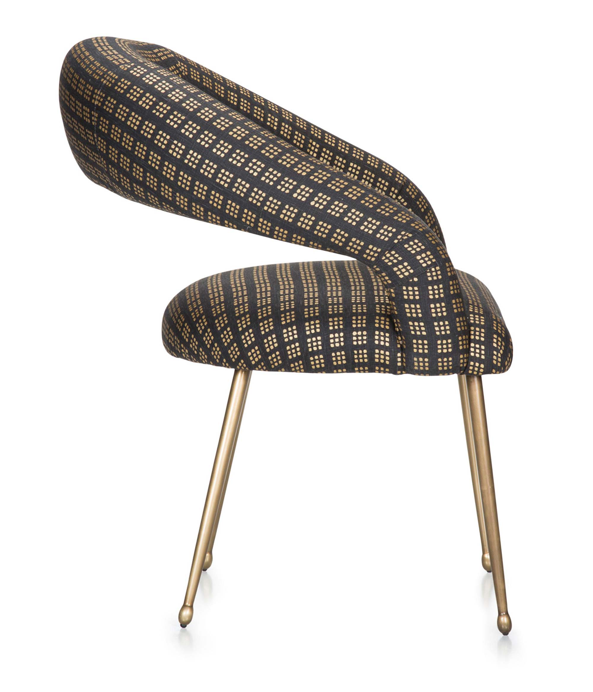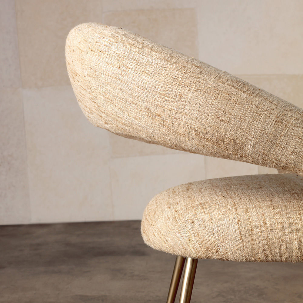 Laurel餐椅采用醒目开放的后背,紧凑的软垫座椅和柔和圆润的轮廓。 它位于抛光黄铜的锥形铸造黄铜腿上。 非常舒适,是休闲用餐理想选择。 提供精选面料和皮革。