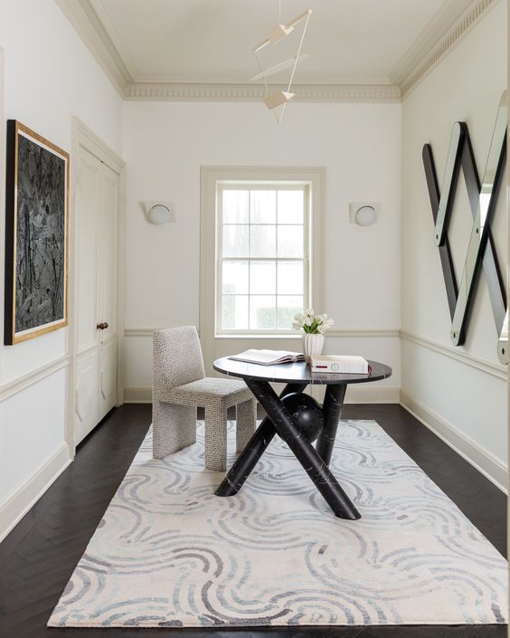 Thayer椅子是第一个完全软垫的餐椅,具有简单的图形魅力。 宽阔的前腿和坚固的后背为这款舒适的用餐或偶尔的椅子增添了建筑精神。 硬木框架采用双层细木工制成,可延长使用寿命。