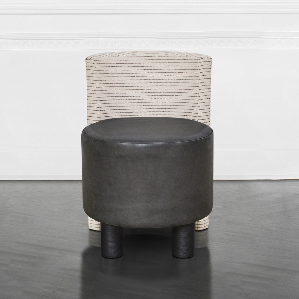 这种低矮的椅子或凳子结合了一些简单的体量和纹理,创造了一个戏剧性的临时座椅。鼓形座椅与垂直的背部相接,形成后肢,椅子的前部位于一对粗壮的圆柱形肋腿上。 这是梳妆台或休闲客厅布置的理想座位选择。 腿部饰面选项包括漂白,天然和黑檀木。 提供精选面料和皮革。
