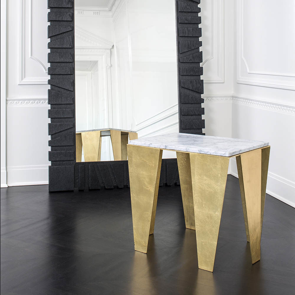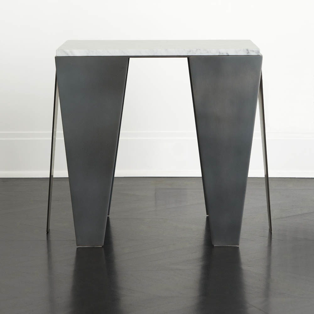 Grafton Side Table(格拉夫顿边几)由黑色钢底座和白色Venetino磨光密封大理石组成,具有反向斜边细节,具有戏剧性和精致性。 这种雕塑设计借鉴了凯利对几何形状的热爱以及对负空间的巧妙运用。