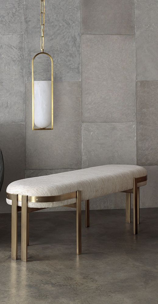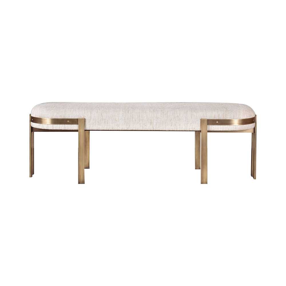 标志性的Elliot长凳结合了简洁的线条和经典的白话。 这款软垫长凳采用成对的黄铜棒料腿,饰有抛光黄铜或油擦黄铜饰面。 座椅有各种精选面料和皮革可供选择。