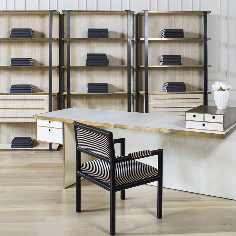 凭借Kelly对混合金属和材料并列的喜爱,富兰克林橱柜由黑色钢架,漂白的胡桃木制成,架子上饰有抛光青铜。 橱柜配有三个抽屉,四分之一英寸铣削青铜拉手,外观大胆,精致,现代。