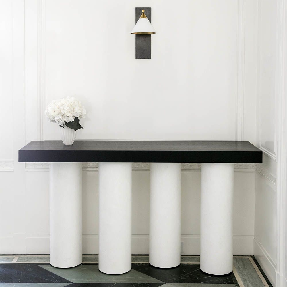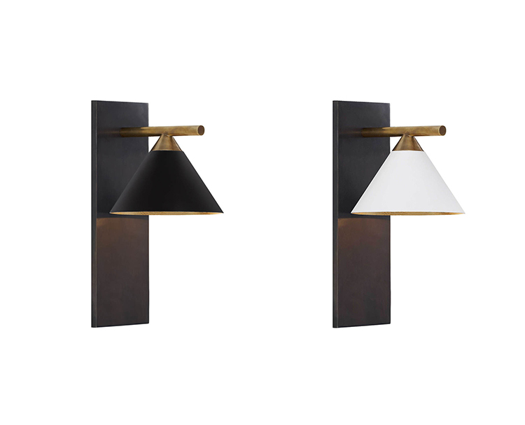 这款精致大胆的壁灯采用混合金属和几何形状进行戏剧性和建筑性设计,将有机女性曲线与时尚男性精确度并置。 其独特的声音充满了现代的精致和灵魂。 有青铜和古董抛光黄铜,古董白色灯罩和古董黑色灯罩 。