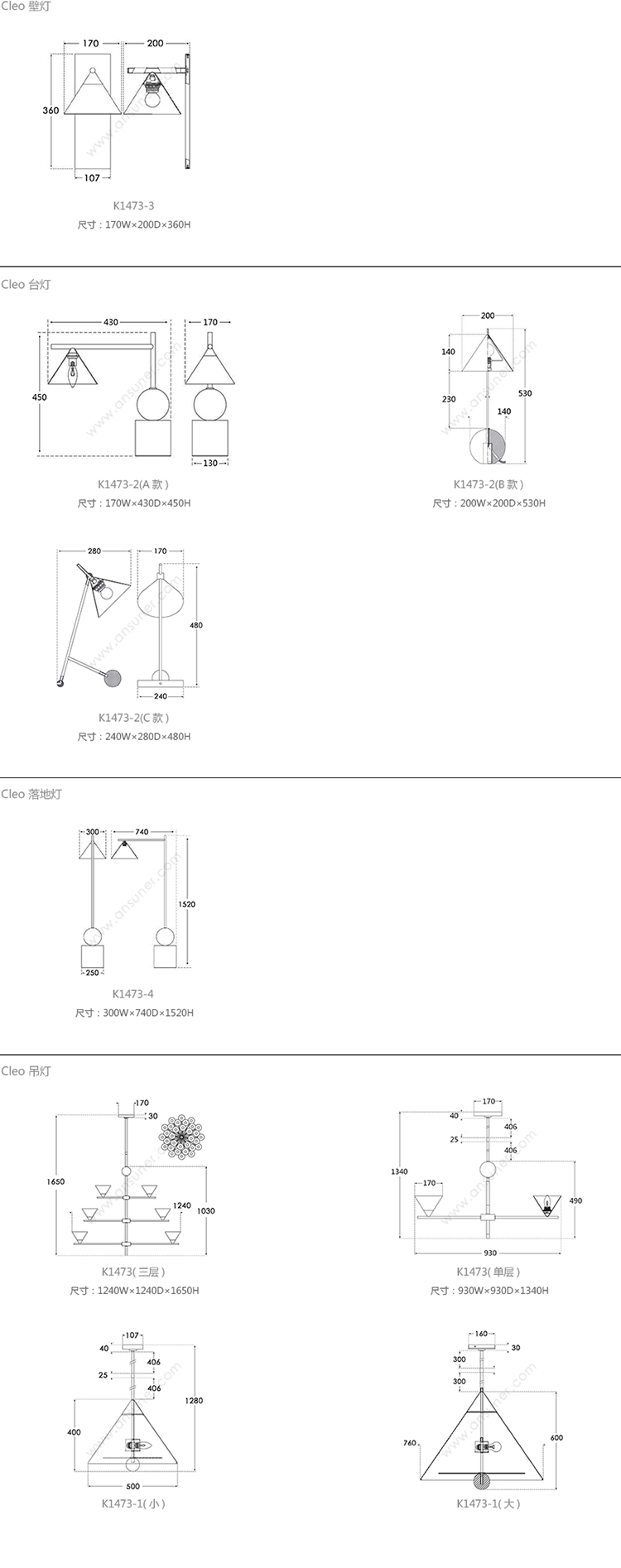 Cleo 壁灯 系列尺寸/示意图