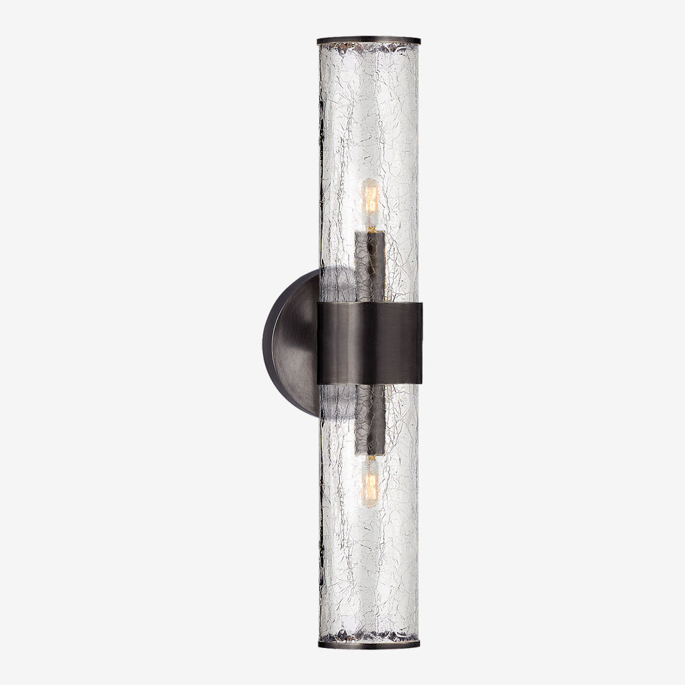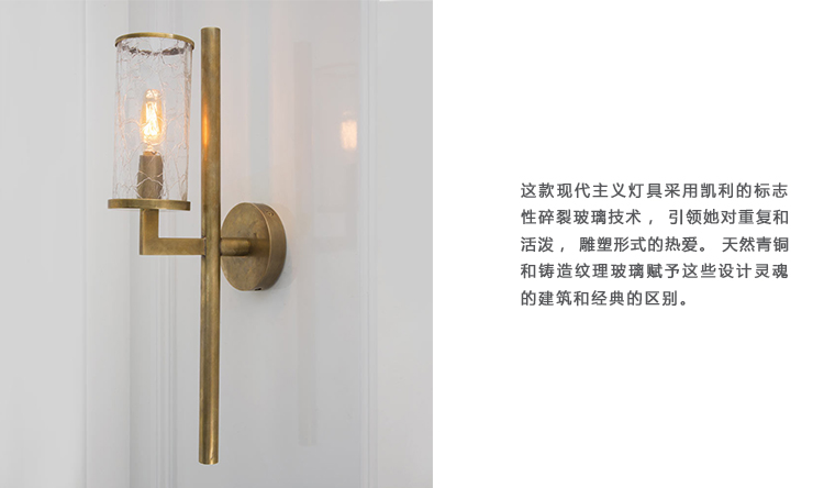 Liaison壁灯以其干净的建筑金属细节和破碎玻璃的动态美感,模糊了现代和经典的线条。 该壁灯适用于室内和室外空间,可提供古董抛光黄铜,青铜和抛光镍。