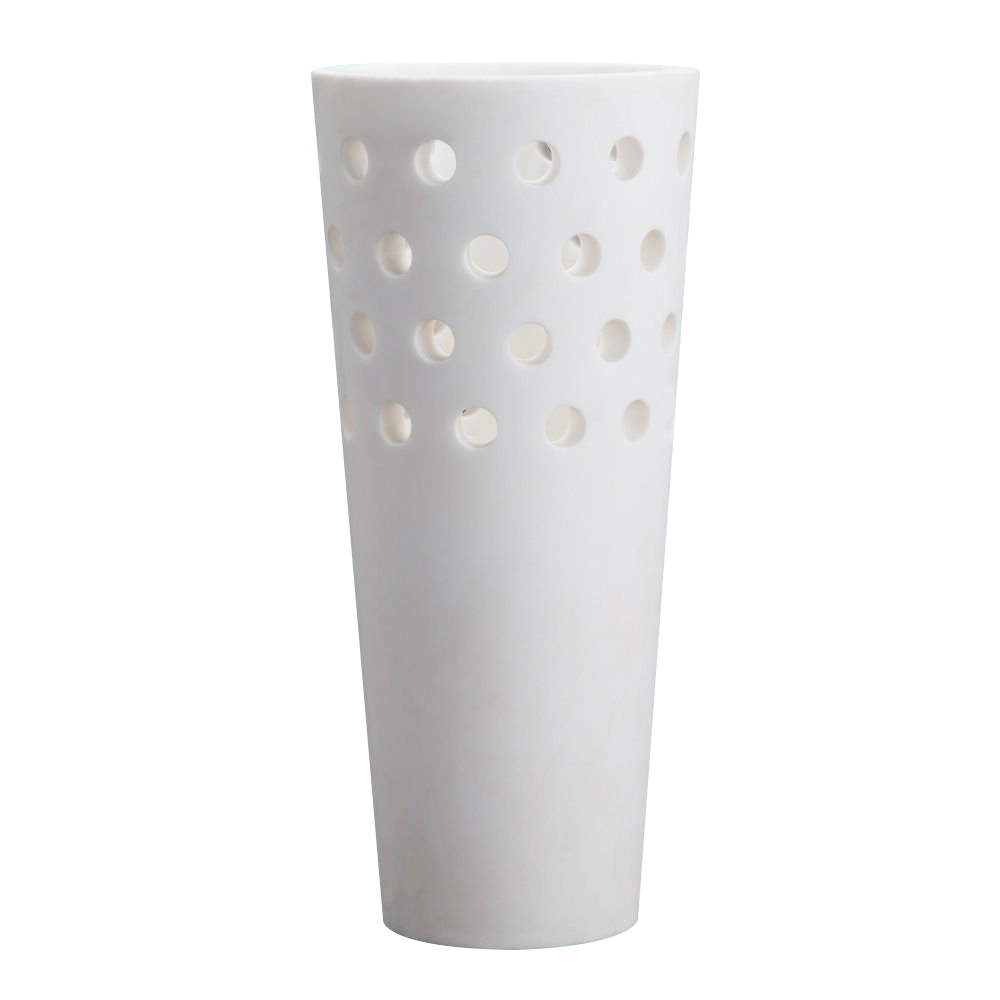 这款优雅且装饰精美的单品采用Kelly标志性穿孔细节设计,重新打造奢华的白色卡拉卡塔大理石,大胆装饰花卉布置或独立时尚。