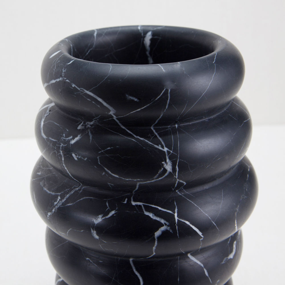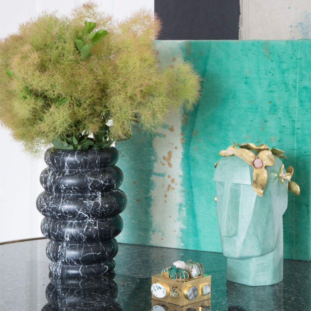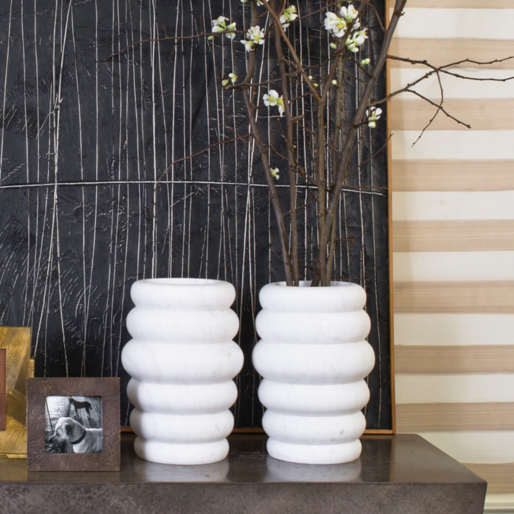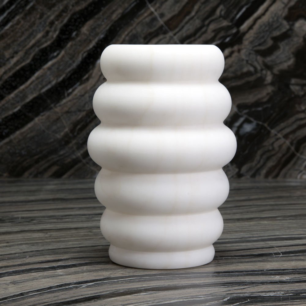 这款手工雕刻的花瓶有着有机的曲线和奢华干净的纹理,是一款优雅而有韵味的花瓶,可以盛放鲜花,也可以单独摆放。