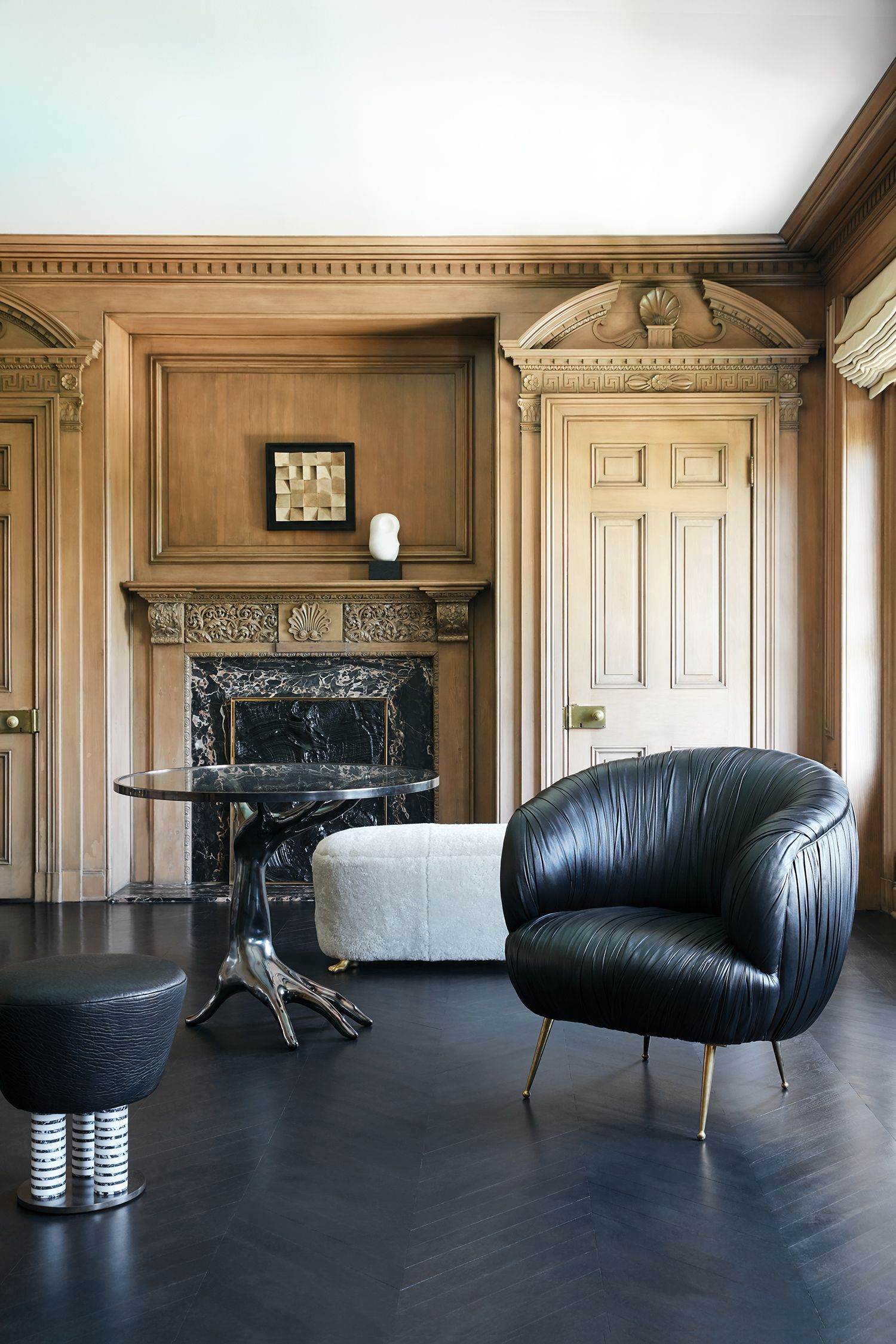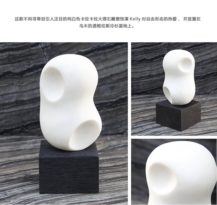 这款不同寻常但引人注目的纯白色卡拉卡拉大理石雕塑饰演Kelly对自由形态的热爱,并放置在乌木的道格拉斯冷杉基地上。