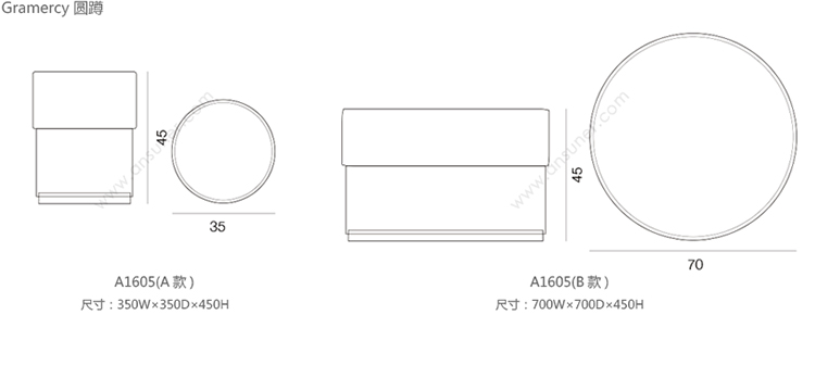 Gramercy 圆蹲 系列尺寸/示意图