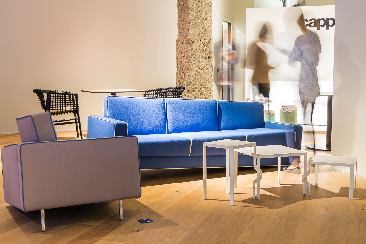 适应当代世界突然变化的精神激发了Fabio Novembre设计Adaptation系列的灵感。 一个引人注目的视觉冲击标志着这个项目与由靠背的斜线形成的视错觉,模拟下降效果。 不同高度的可变支腿系统和逐渐增大尺寸的垫子使座椅底座与地面完全平行,确保了舒适度。 沙发和扶手椅采用织物和皮革制成,采用以下对比色饰面,增强了物体几何形状:黑色,白色,灰色,红色,酒红色,空军蓝。