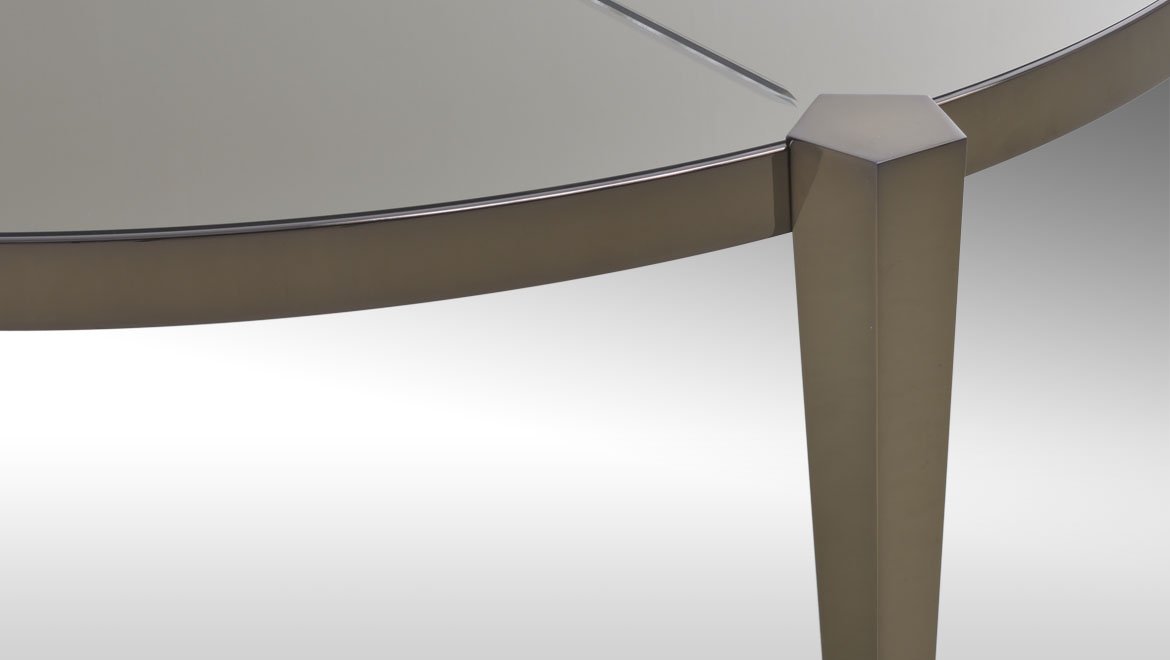 Matched to perimetral stainless steel frame with polished chrome, gun-metal