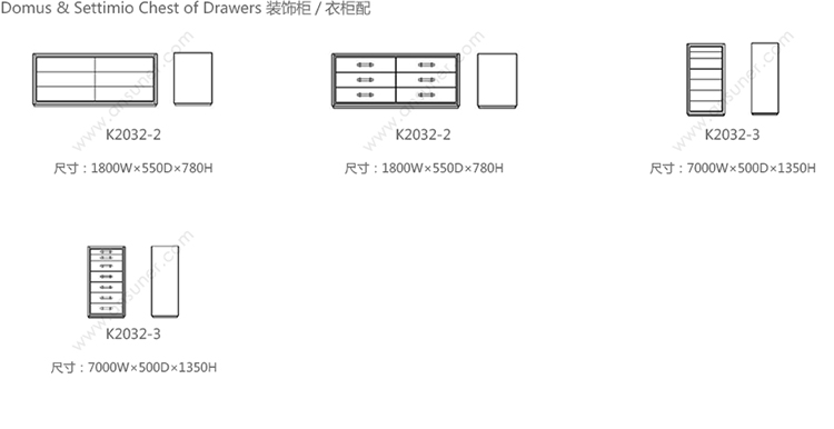 Domus & Settimio Chest of Drawers 系列尺寸/示意图