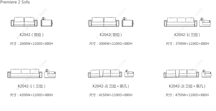 Premiere 2 Sofa 系列尺寸/示意图