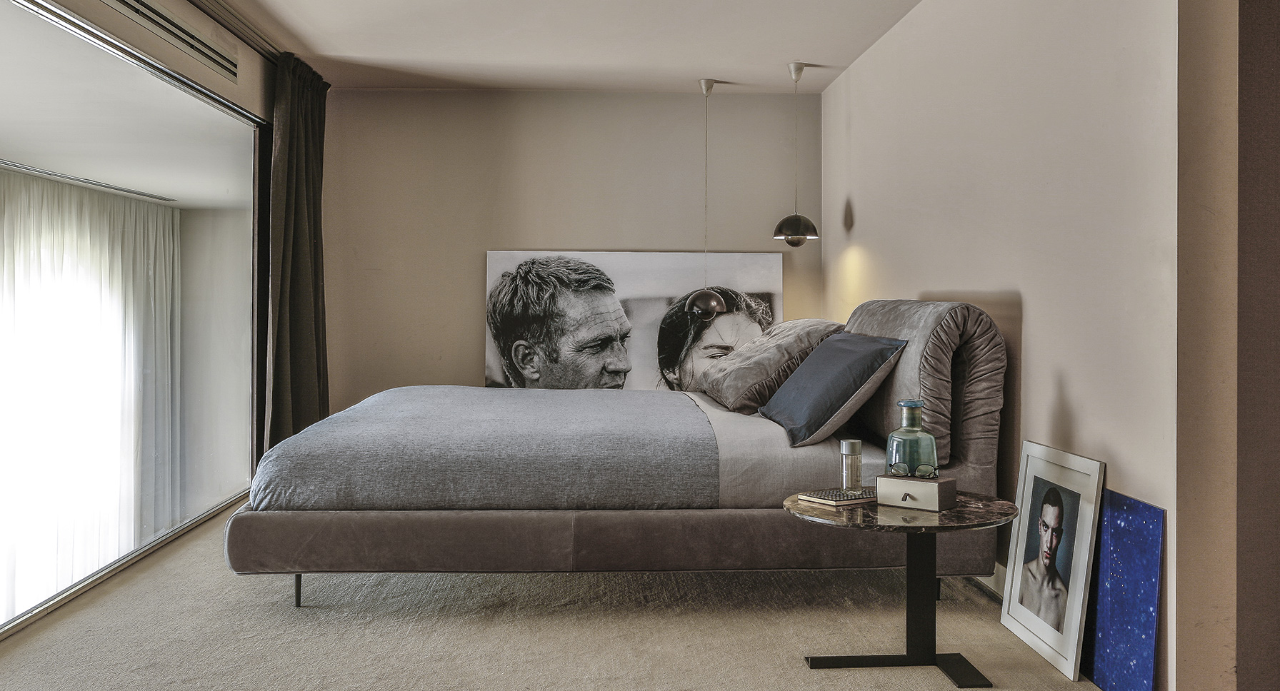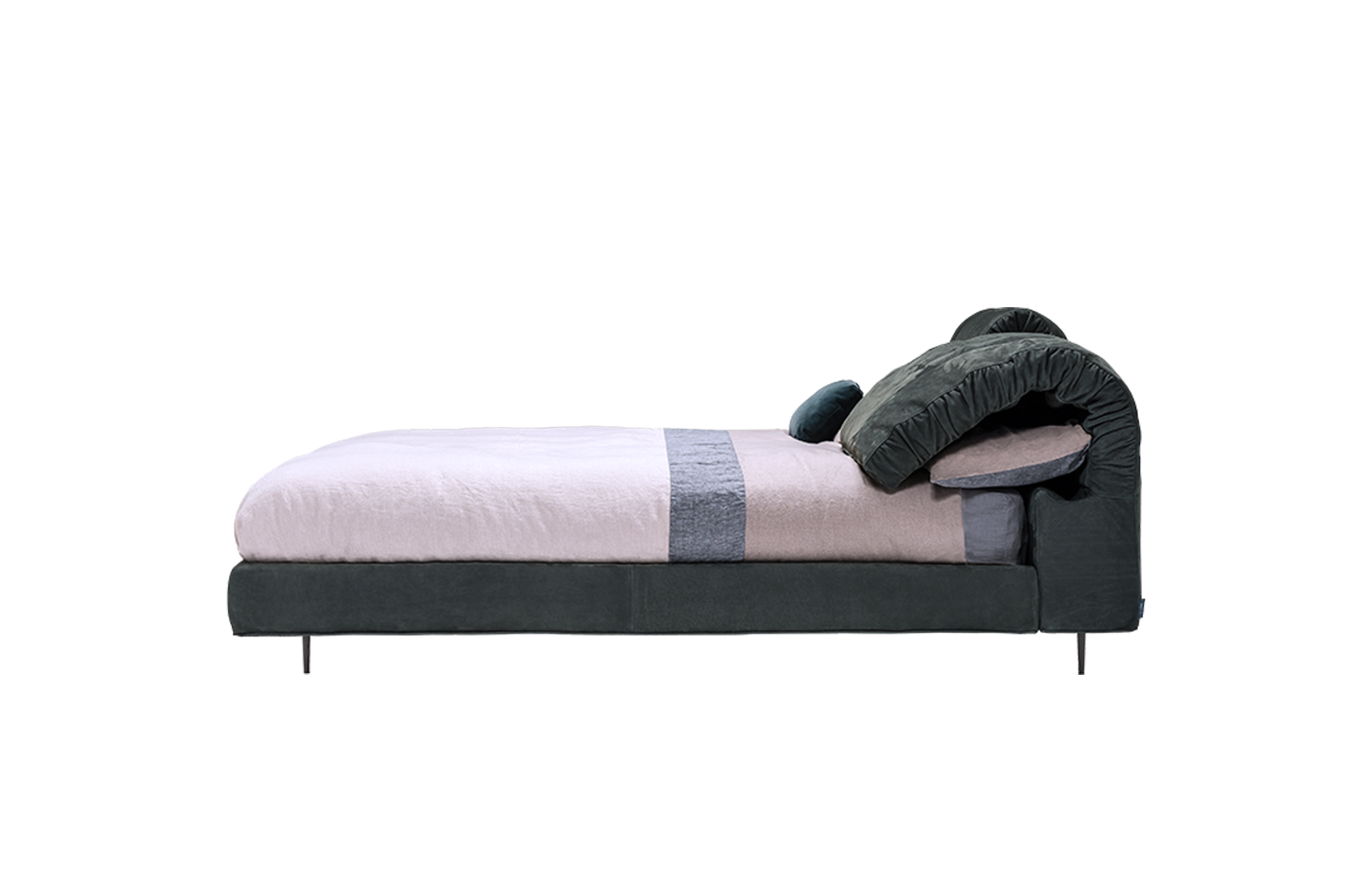 疯狂的梦幻床, 灵感来自于同一系列的沙发,它提供一个可调节的床头板,允许舒适和优雅的多功能性。