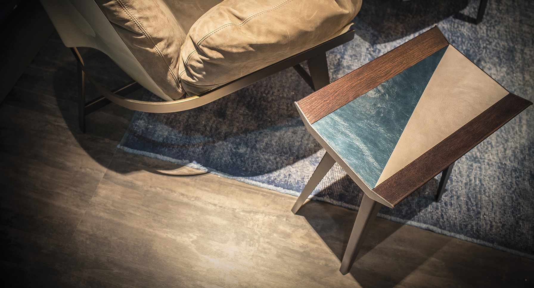 由Gino Carollo设计的的太空入侵者是矩形的系列矮桌子。它们的独特之处在于上面部分覆盖了植物鞣制的皮革,这让人想起了非洲的几何图案,混合了自然和强烈的色彩。
