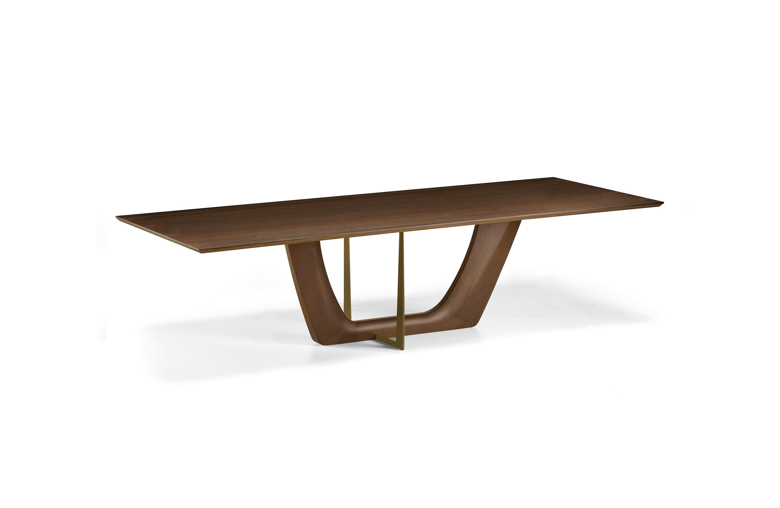 一个极富特色的餐桌,富有独特的细节,保证了在任何环境中都备受瞩目的存在。底座的结构和工艺都凸显出了独立的金属环,由青铜或钛合金涂漆制成。