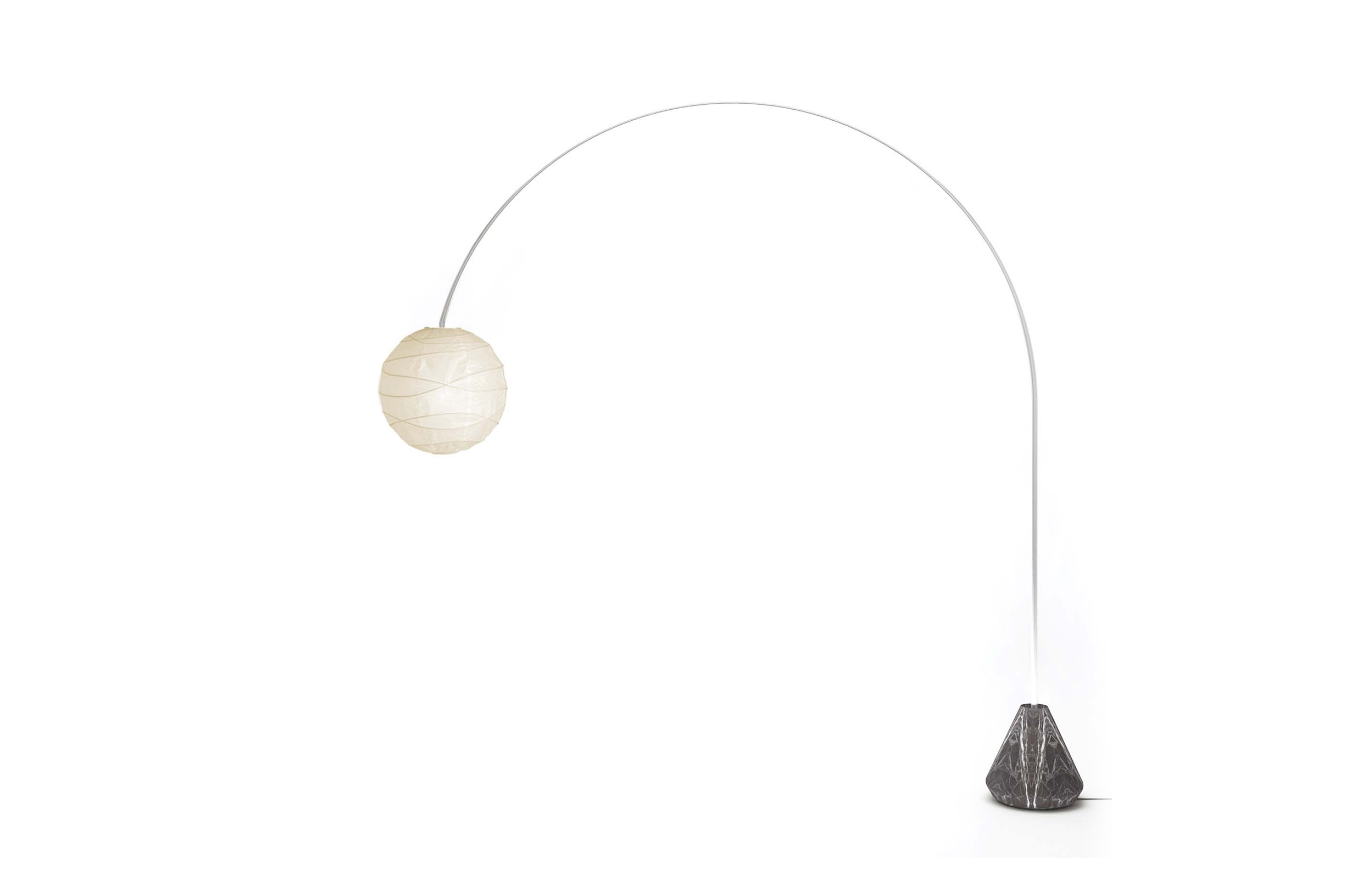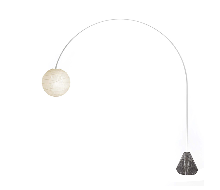 Nube 是一个简单而又标志性的产品系列。弧形落地灯代表着大胆和清晰的几何形状之间的完美平衡,与通过定义的金属元件连接的纸张和大理石之类的材料对位一样。