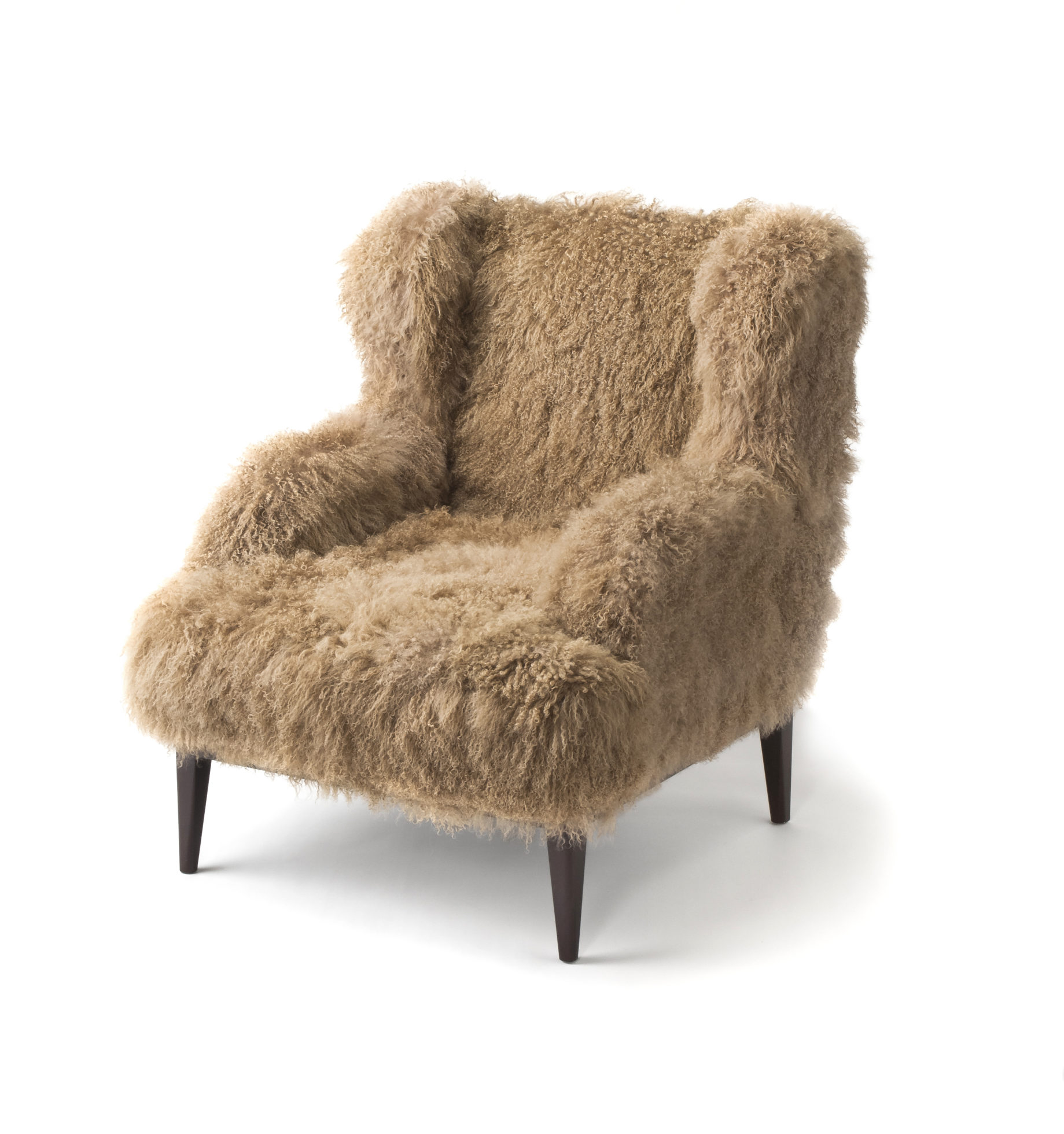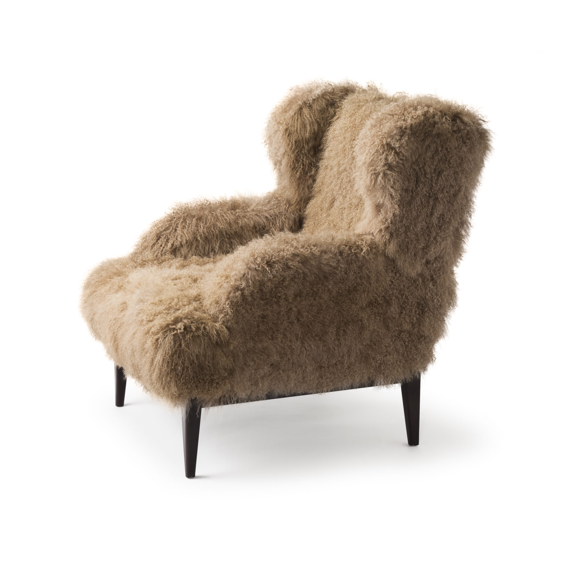 一个更大,更友好,更大版本的大爸爸翼椅。传统上用羽毛包裹的座椅和美国黑胡桃基座建造。