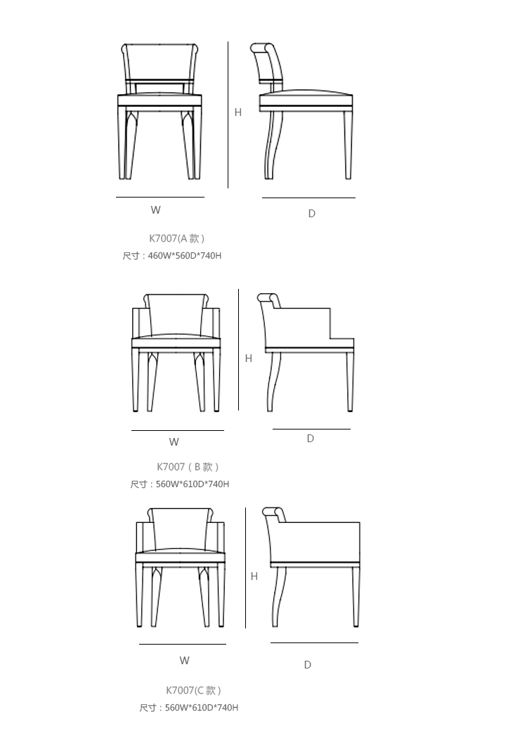460W*560D*740H(其余尺寸见详情)