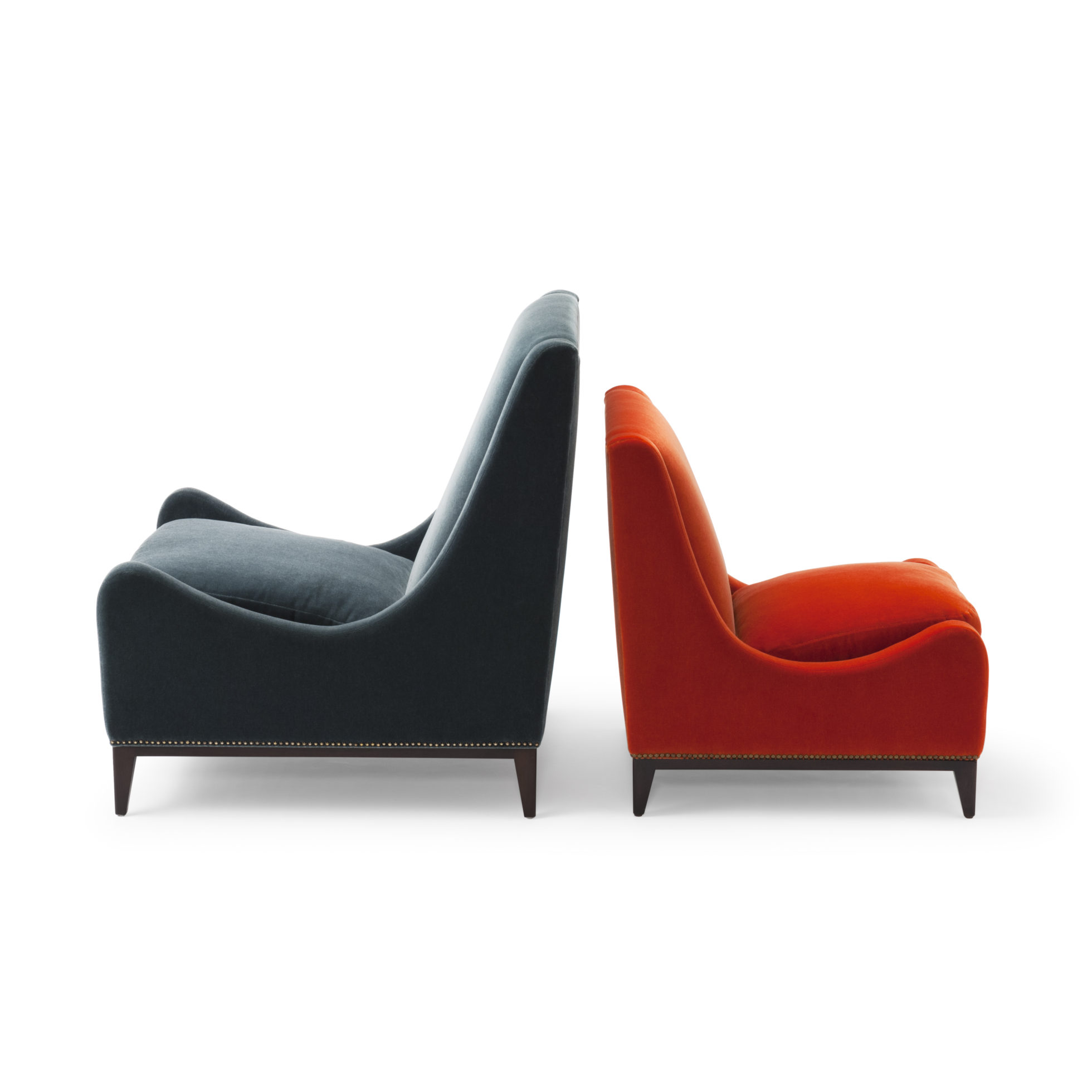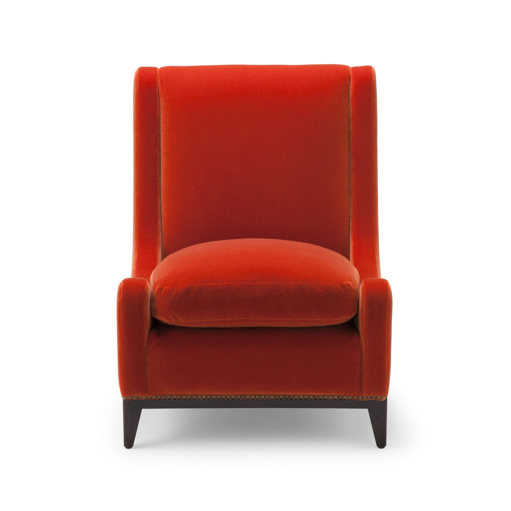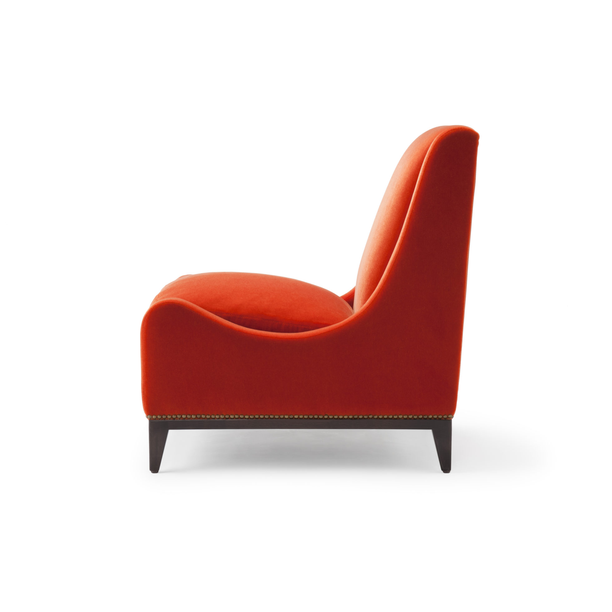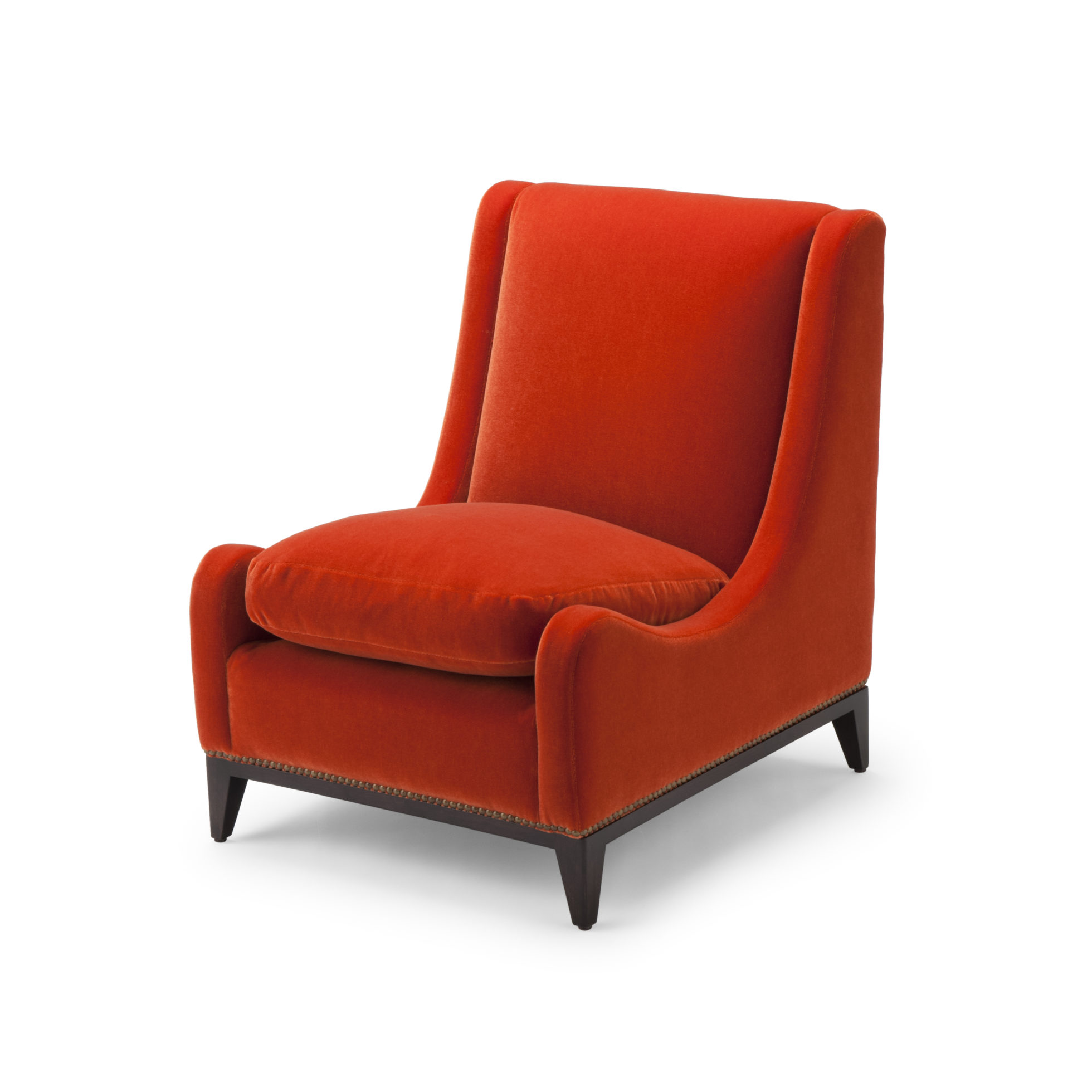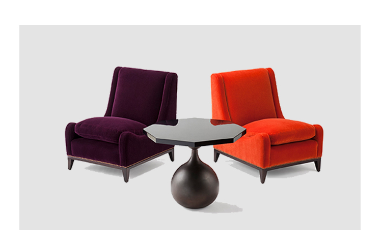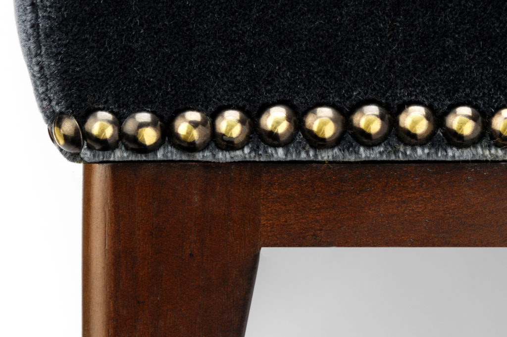 这款Sloop座椅采用Aubergine马海毛制成,配有黄铜指甲油和坚固的美国黑胡桃巧克力黑檀木腿。