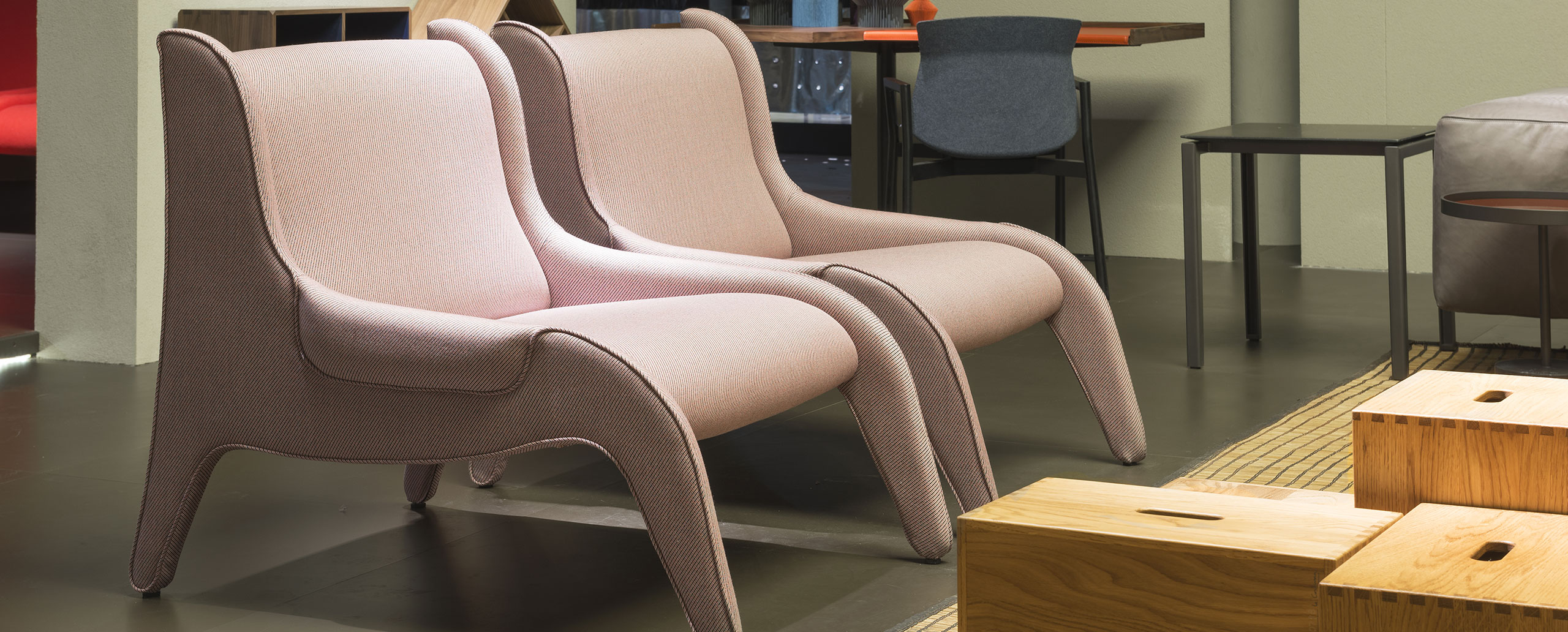 配备舒适宽座位的扶手椅。内部使用弹性绷带和钢框架。使用无CFC聚氨酯海绵和喷胶棉填充。侧板也能充当扶手。使用不可拆卸的布艺面料或皮革软包。椅脚采用黑色塑料材料制成。也有红色布艺面料软包的经典版扶手椅。桑顿·怀尔德(Thornton Wilder)的《九死一生》是在20世纪40年代末首次在米兰皮科罗剧院(Piccolo Teatro)演出的首批喜剧之一,赞努索被委任为此设计舞台布景和家具。包含使用其已经试验过的新材料并命名为Antropus的扶手椅。