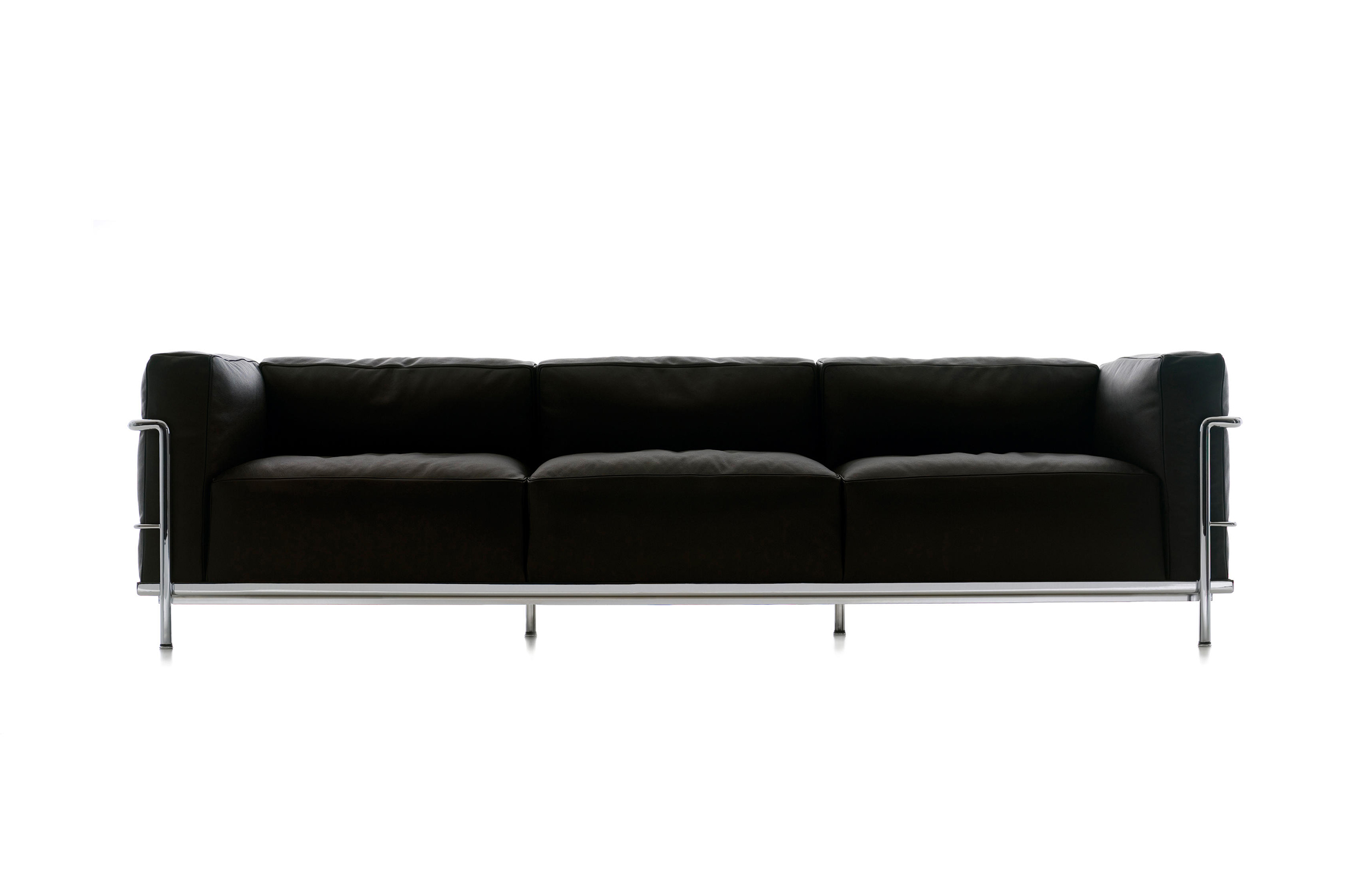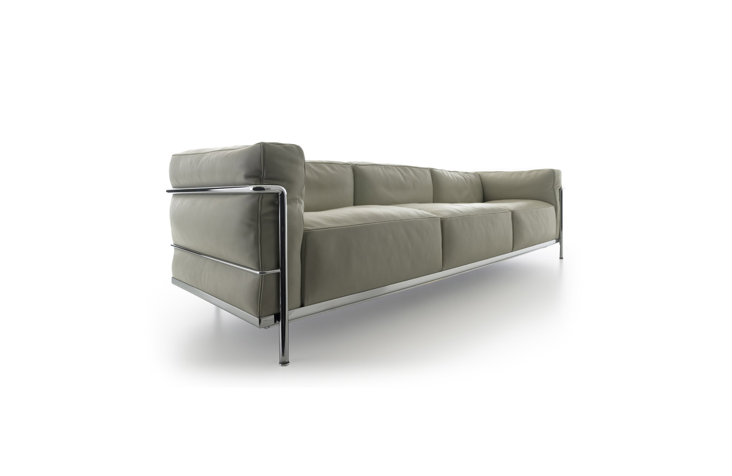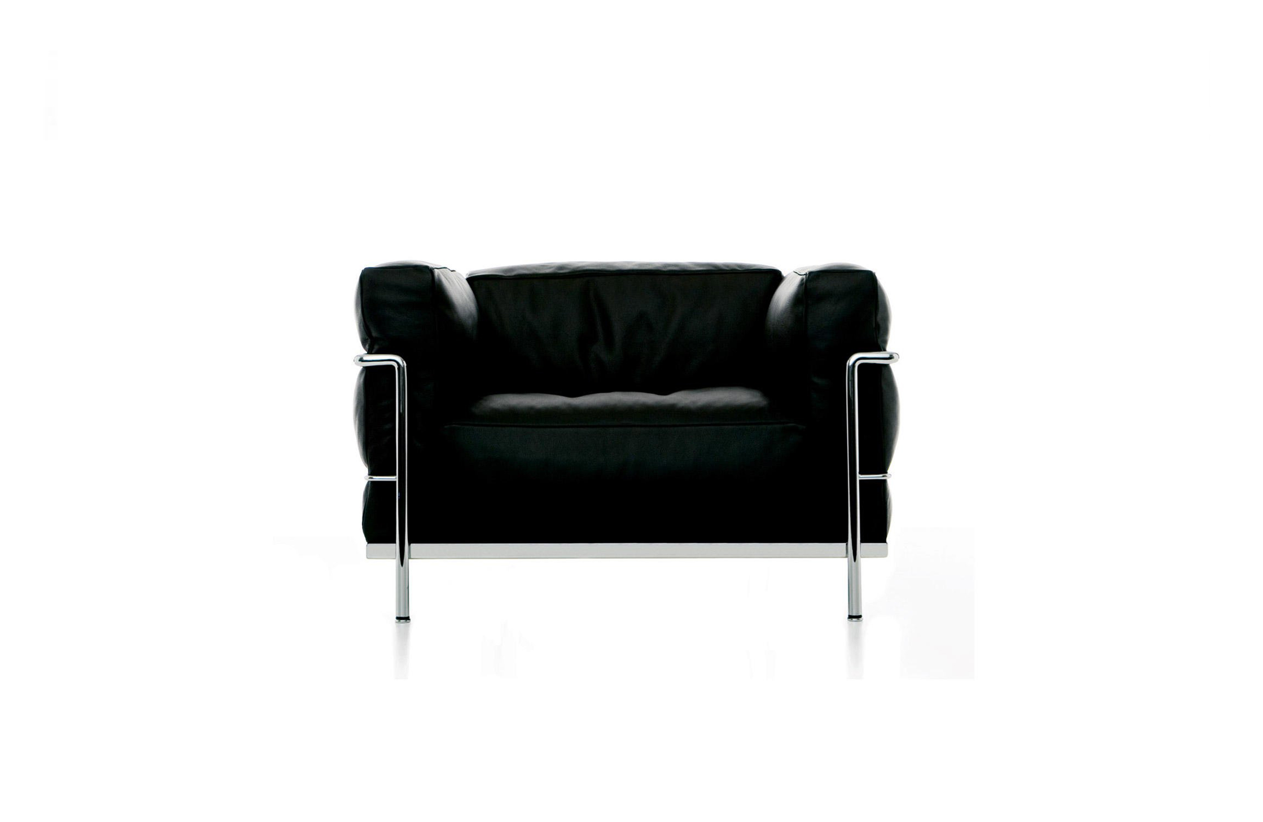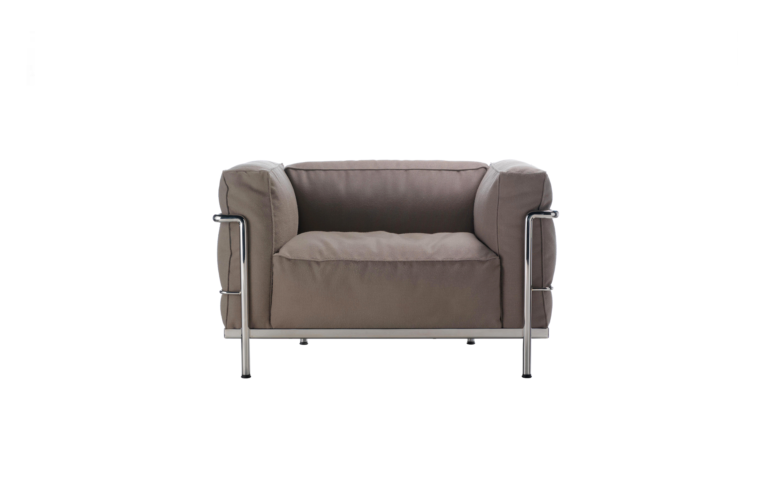 Fauteuil Grand Confort, 又称LC3。采用CR3三价镀铬钢材质或光泽玄武岩搭配灰色、亮蓝、绿色、枣红及赭色或哑光黑色珐琅钢架的双扶手椅和左/右单扶手椅及两人位/三人位沙发。柔软的衬垫采用聚氨酯海绵和喷胶棉或聚氨酯芯羽绒棉。皮革或布艺面料软包;镀铬框架结构可由布艺软包。同样有户外版本。