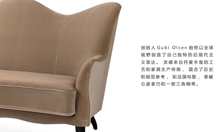 Gubi的创始人Gubi Olsen始终具有全球视野,创造了他自己独特的后现代主义表达方式。灵感来自于丹麦丰富的工艺和家具生产传统,混合了历史和视觉的参考,如法国电影院、拿破仑·波拿巴和大钢琴。