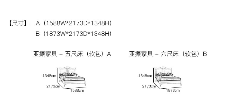 亚振家具 - 五尺床(软包) 产品尺寸/示意图