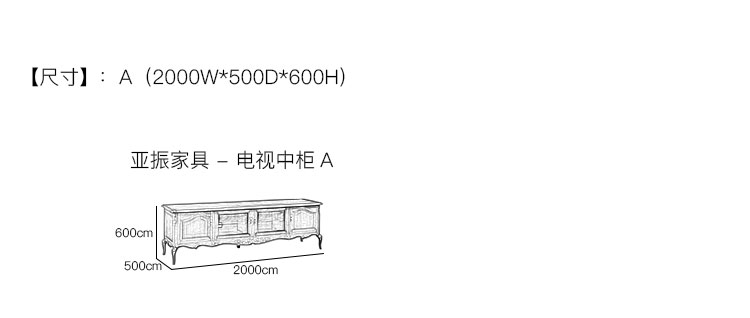 亚振家具 - 电视中柜 产品尺寸/示意图