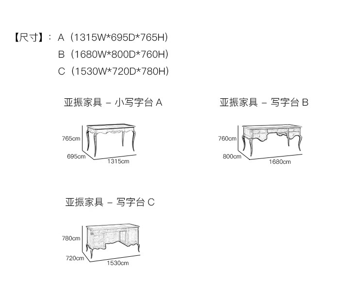 亚振家具 - 写字台 产品尺寸/示意图