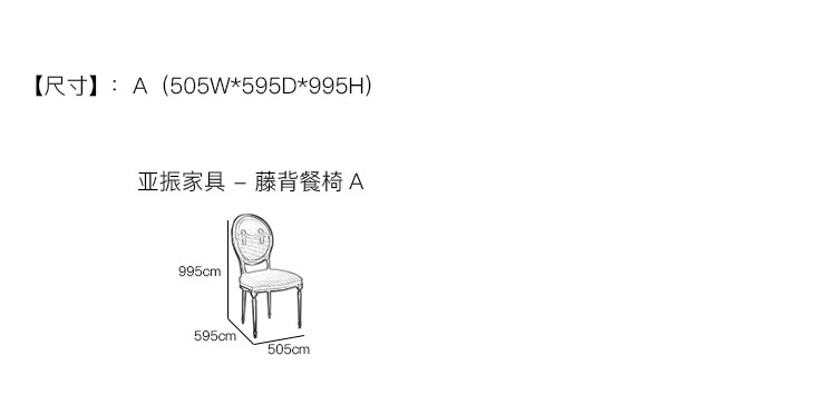 亚振家具 - 藤背餐椅 产品尺寸/示意图