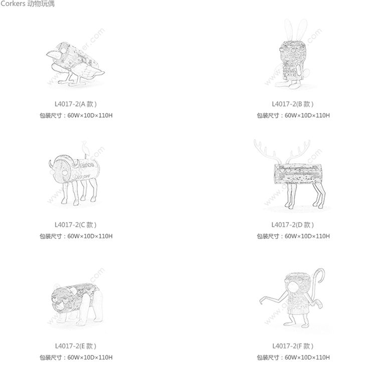 Corkers 动物玩偶 系列尺寸/示意图