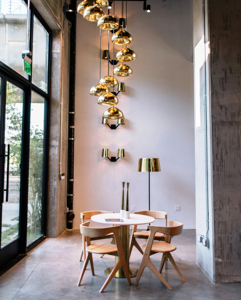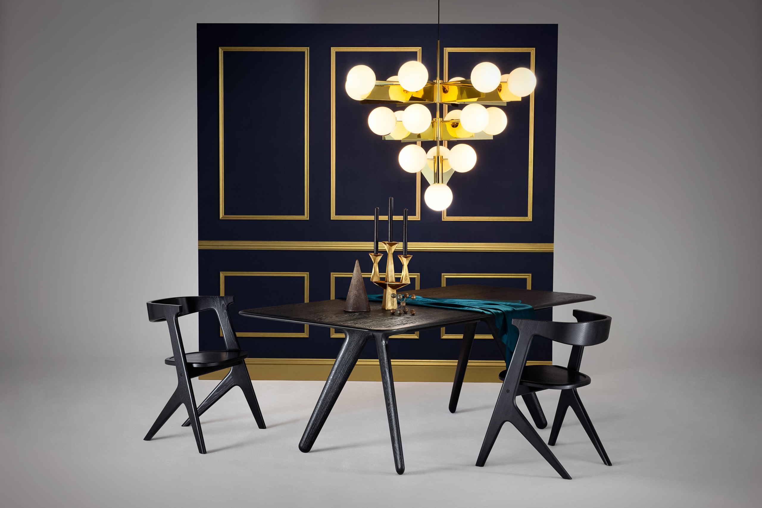 用黑色或天然漆进行处理。 Slab集合包括凳子,椅子,餐桌和桌子。