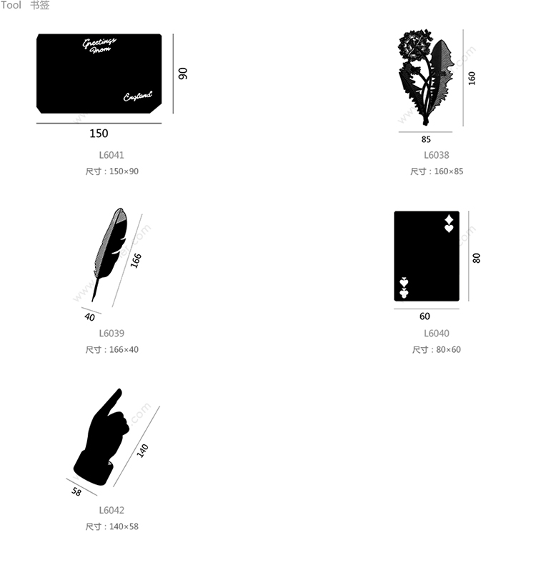 Tool 明信片书签 系列尺寸/示意图