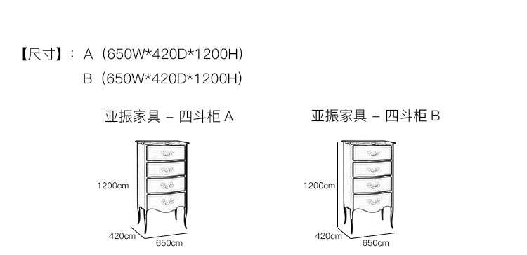 亚振家具 - 四斗柜 产品尺寸/示意图