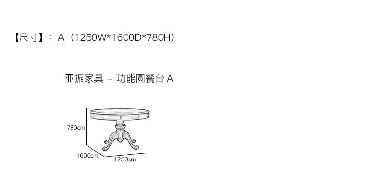 亚振家具 - 功能圆餐台 产品尺寸/示意图