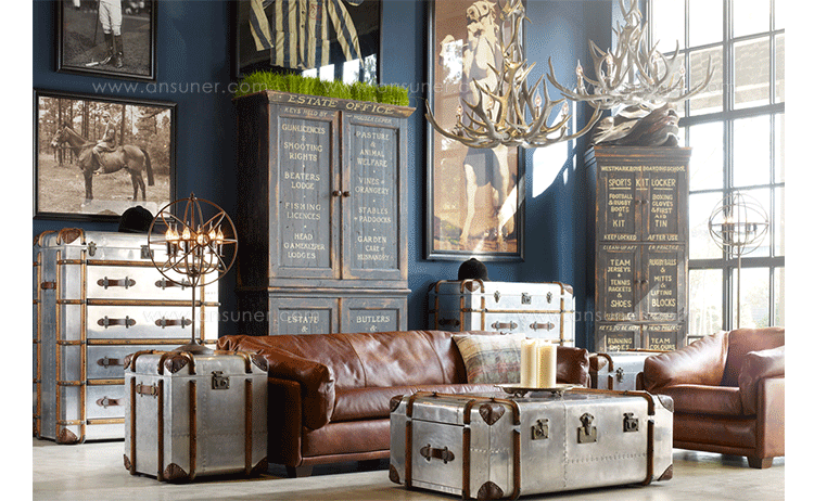 "慵懒、我行我素、精致、时尚,还有那么点怀旧的味道,Timothy Oulton家居的产品就是用这些无可替代的特点,征服了各国的英伦家具爱好者们。重提浪漫时代的长长的豪华海上航行,Globetrekker 系列的灵感来自Timothy Oulton于1914年在一个古董市场发现旅行箱,他深深的被复杂细节和美丽的黄铜板的旅行箱迷住了,Oulton拆解了那个古色古香的旅行箱并进行重新设计出一系列作品,它涵盖的灯表、 箱子、 咖啡桌和书柜等集合。捕获真正的魅力,还原精致工艺的旧古董皮箱的精髓,通过怀旧的贴纸饰面样式,采用老木、优质的老式皮革和黄铜铰链,通过精湛的手工处理完成了这套系列。