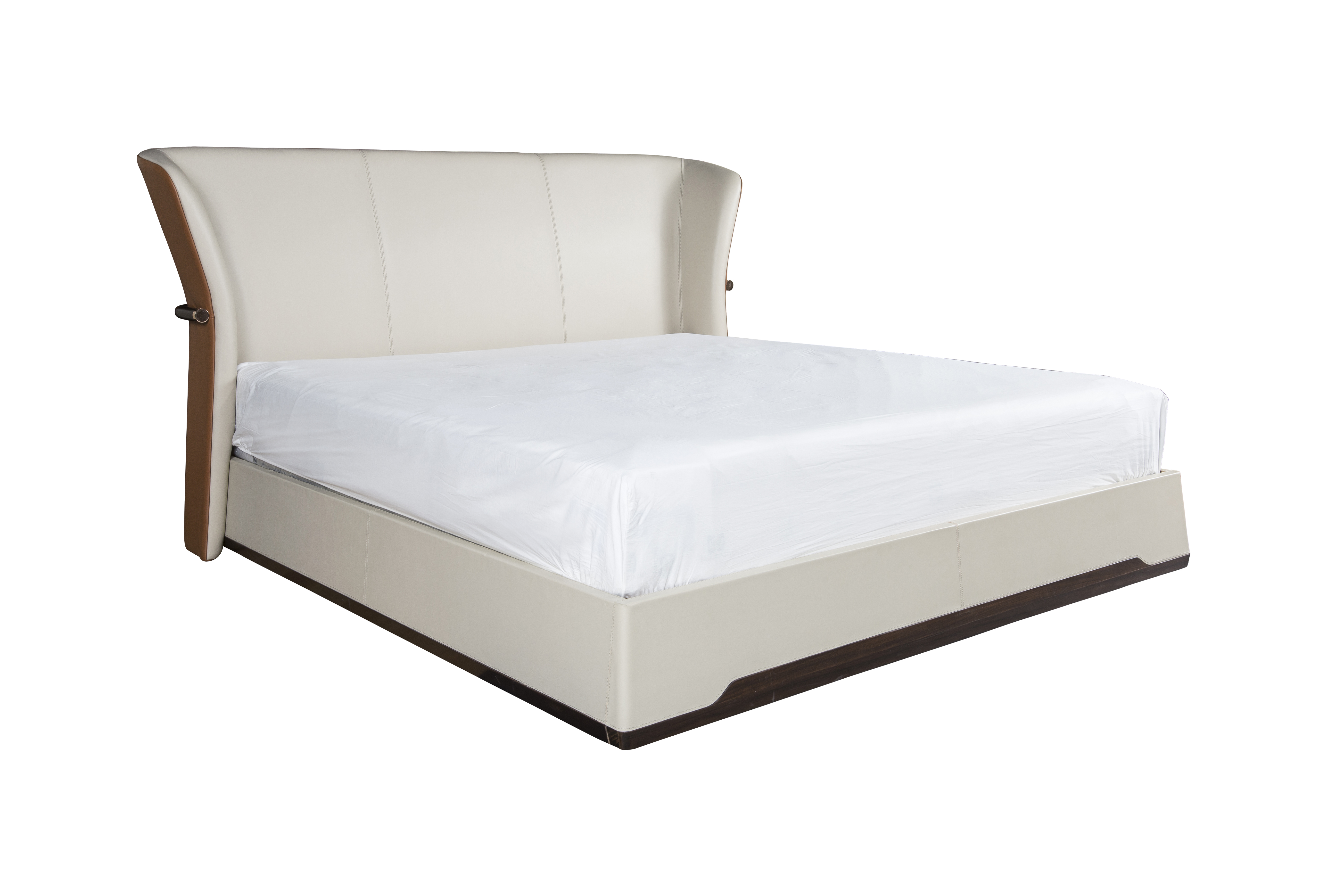 以现代极简风格的手法,融合立体切割雕塑的艺术美学,将艺术与工艺理性结合的包豪斯思想发挥到极致。床屏正视下宽上收形成的张力,表达了设计师向自然万物生命顽强的致敬,对力量的崇拜,再微微张开,则是象征人生精彩绽放。以及床屏的怀抱,床身下隐形的夜用感应灯带,更是设计师将产品表达出对人性细腻的友善!